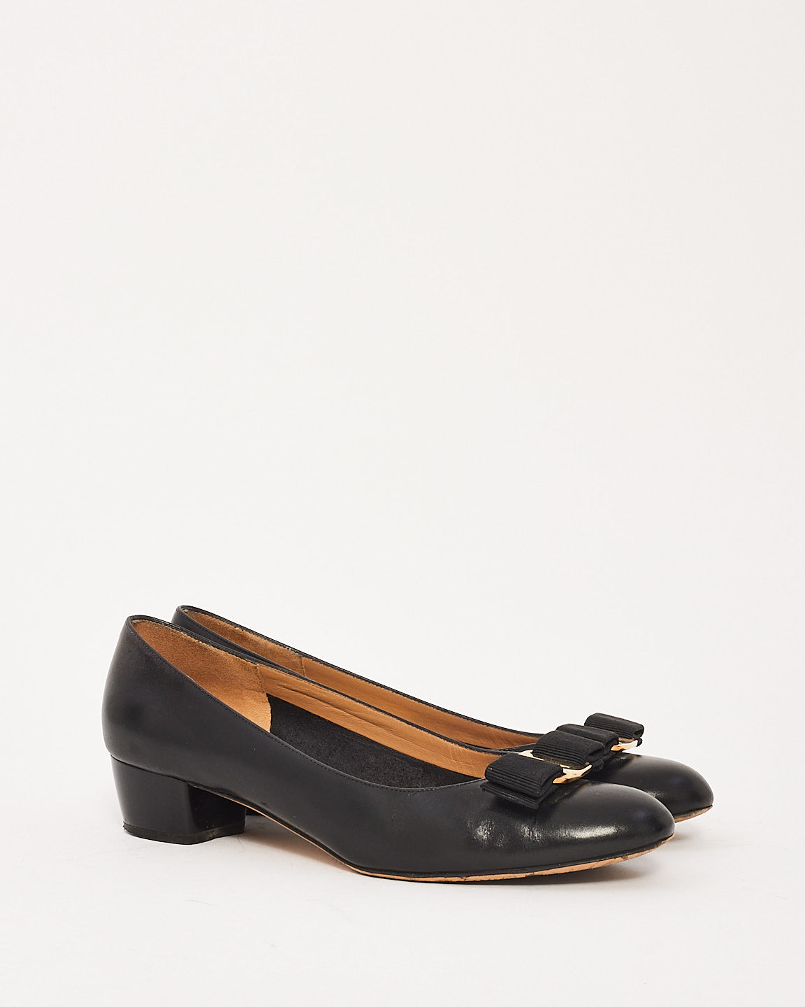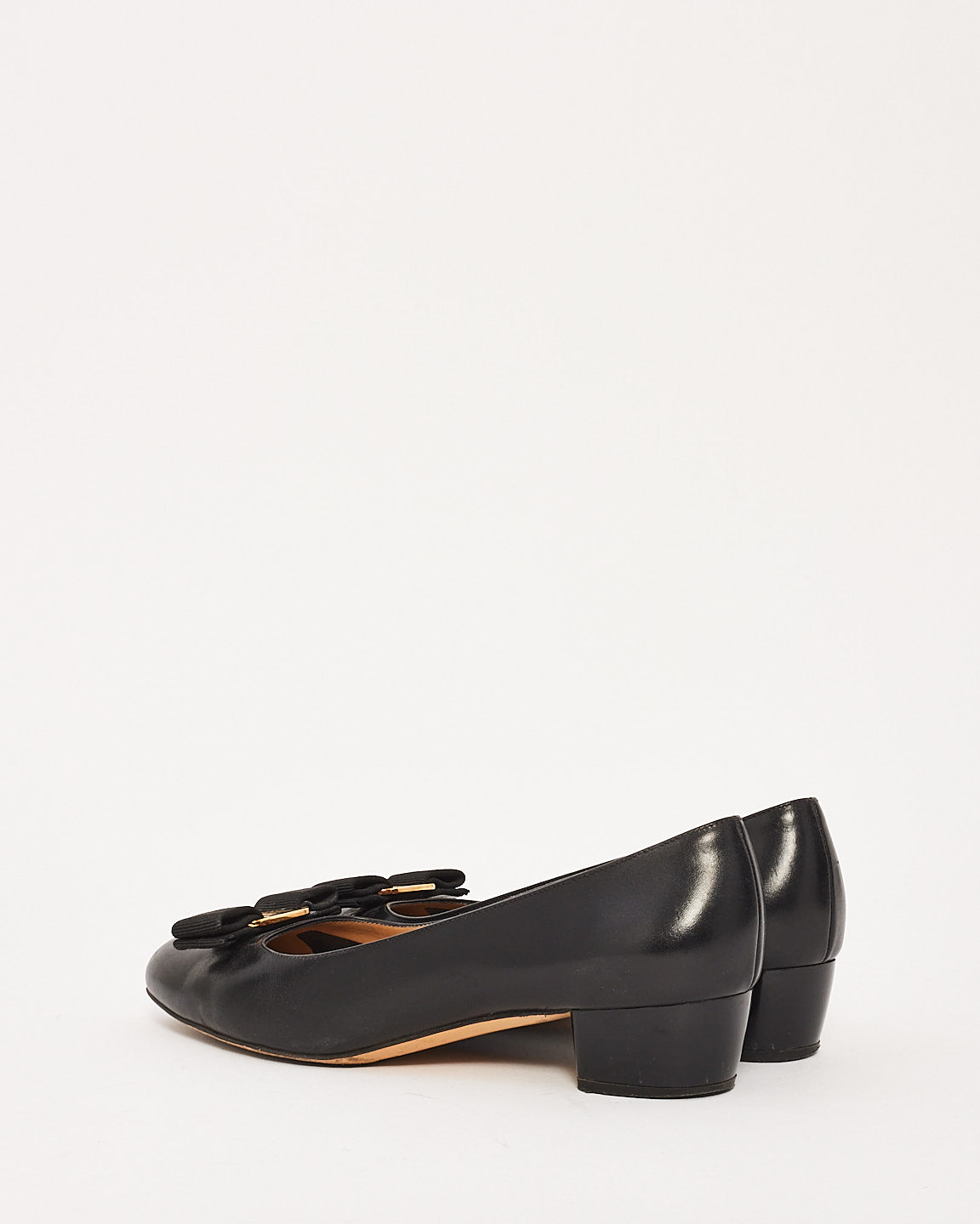 Black Smooth Leather Vintage Vara Bow Pump Heels - 37.5