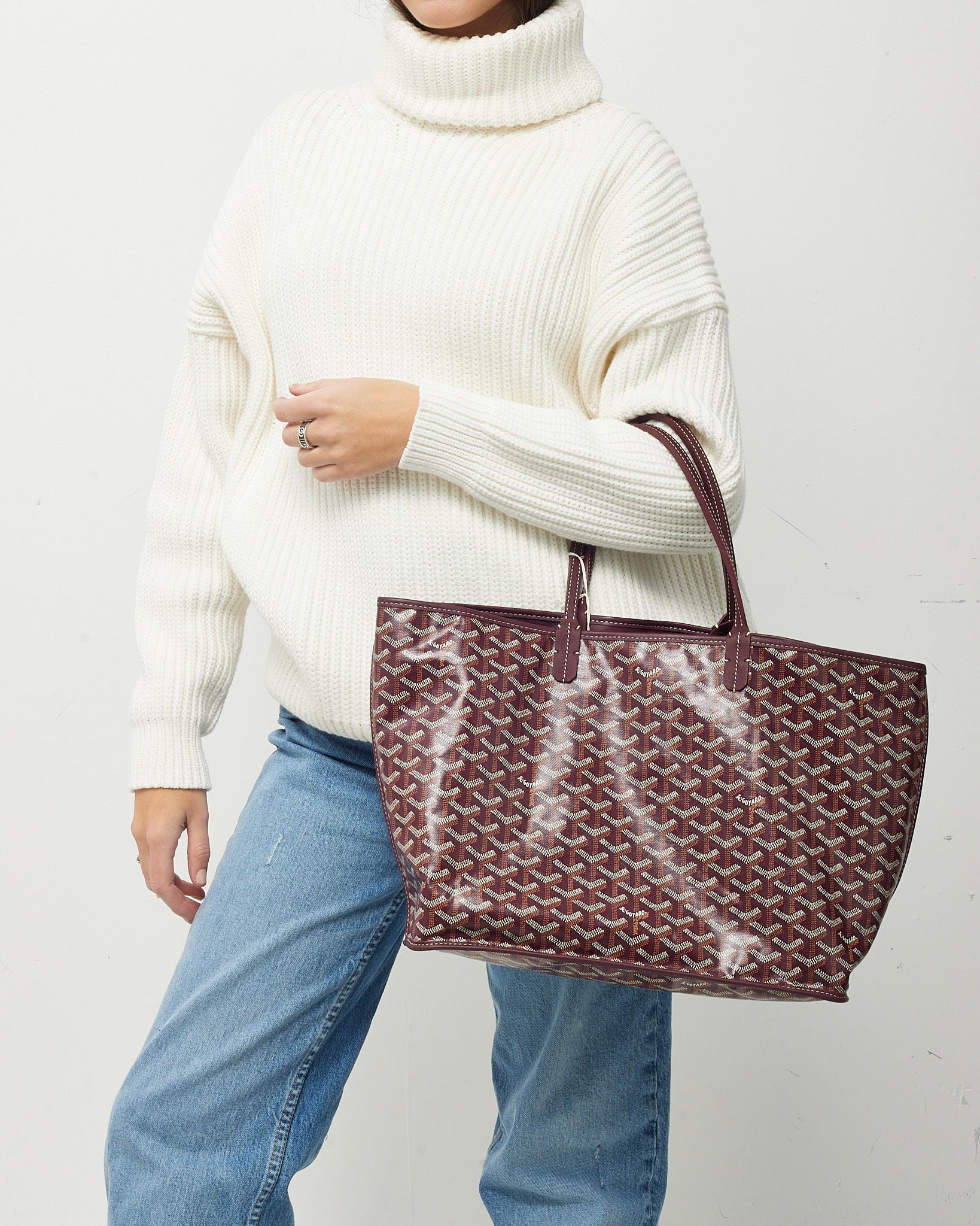 Burgundy Bordeaux Goyardine Coated Canvas Reversible Anjou PM Tote Bag