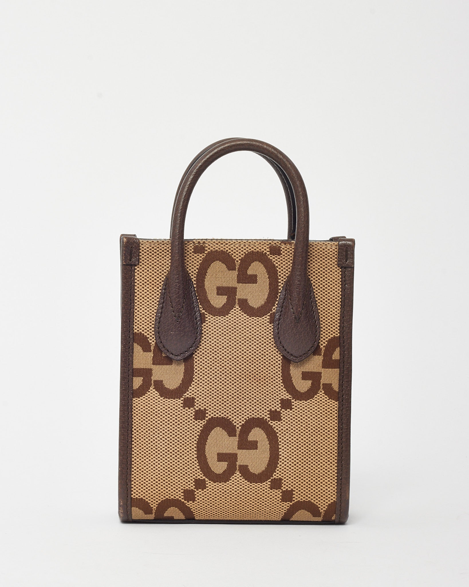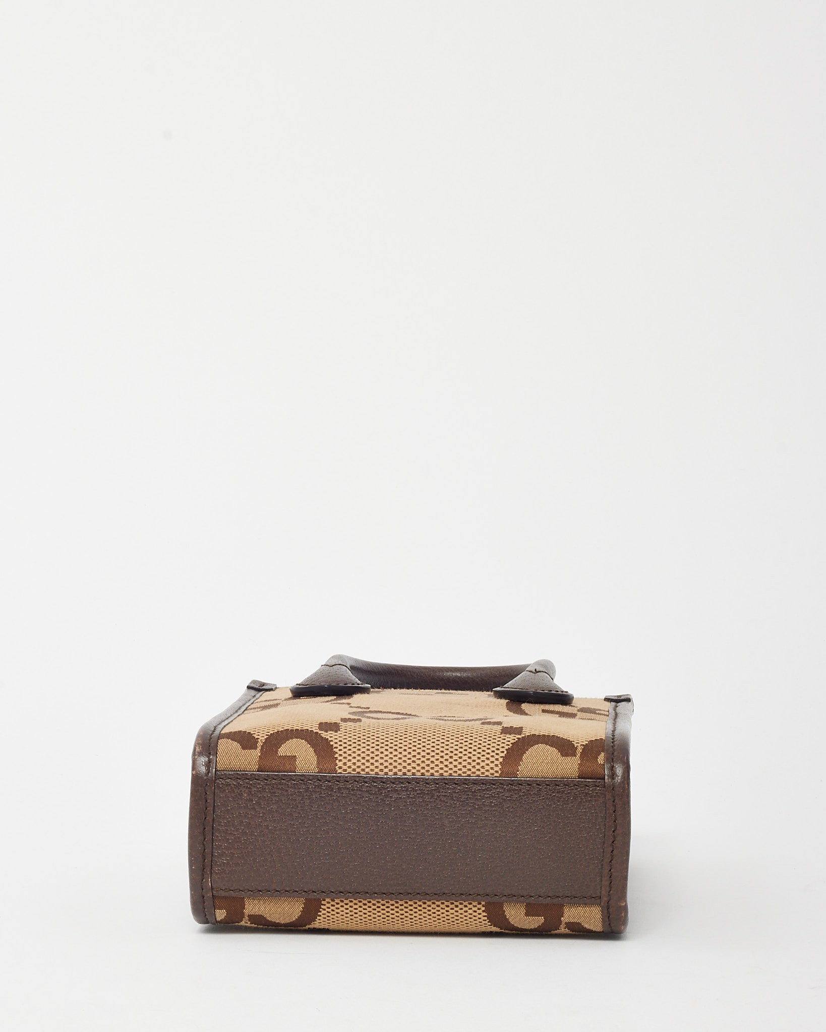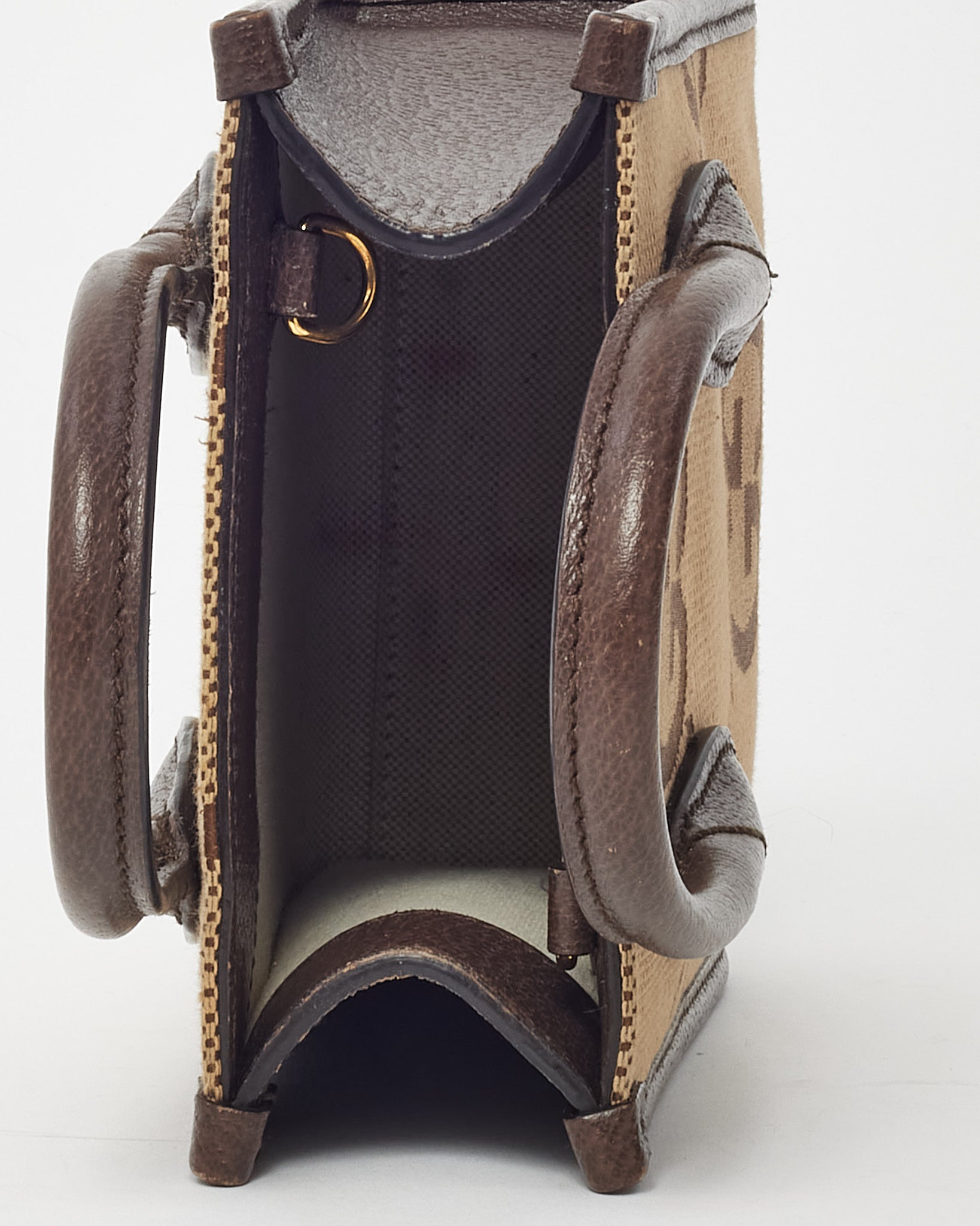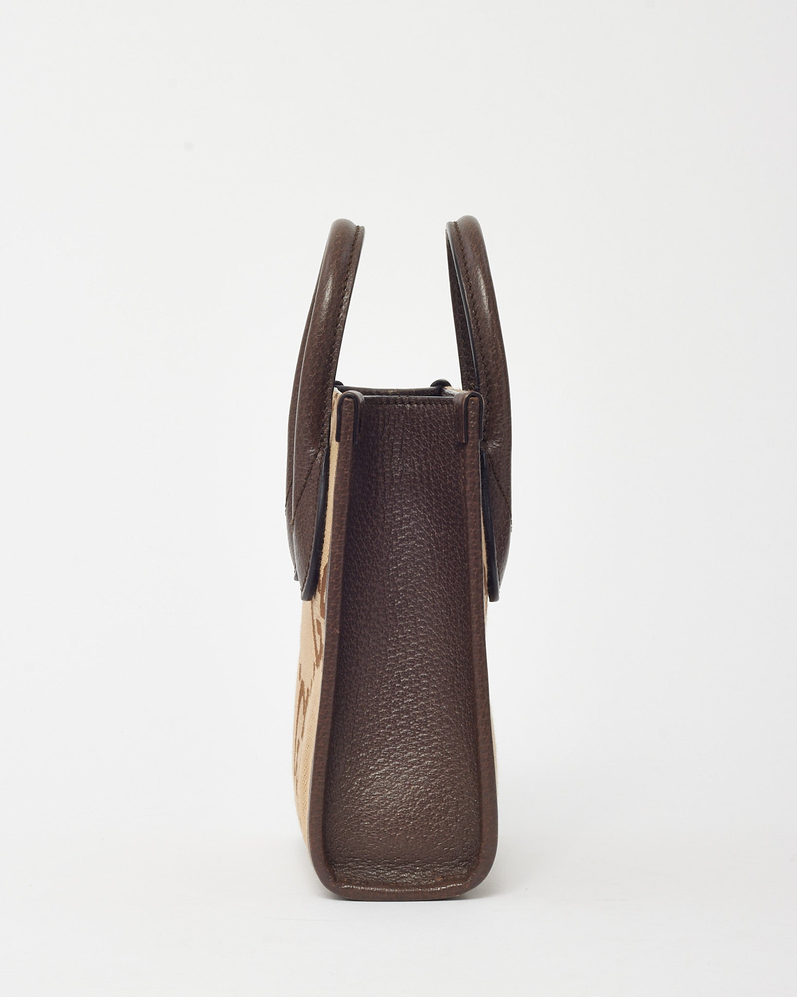 Beige and Brown Jumbo GG Monogram Canvas Mini 2Way Tote with Web Strap
