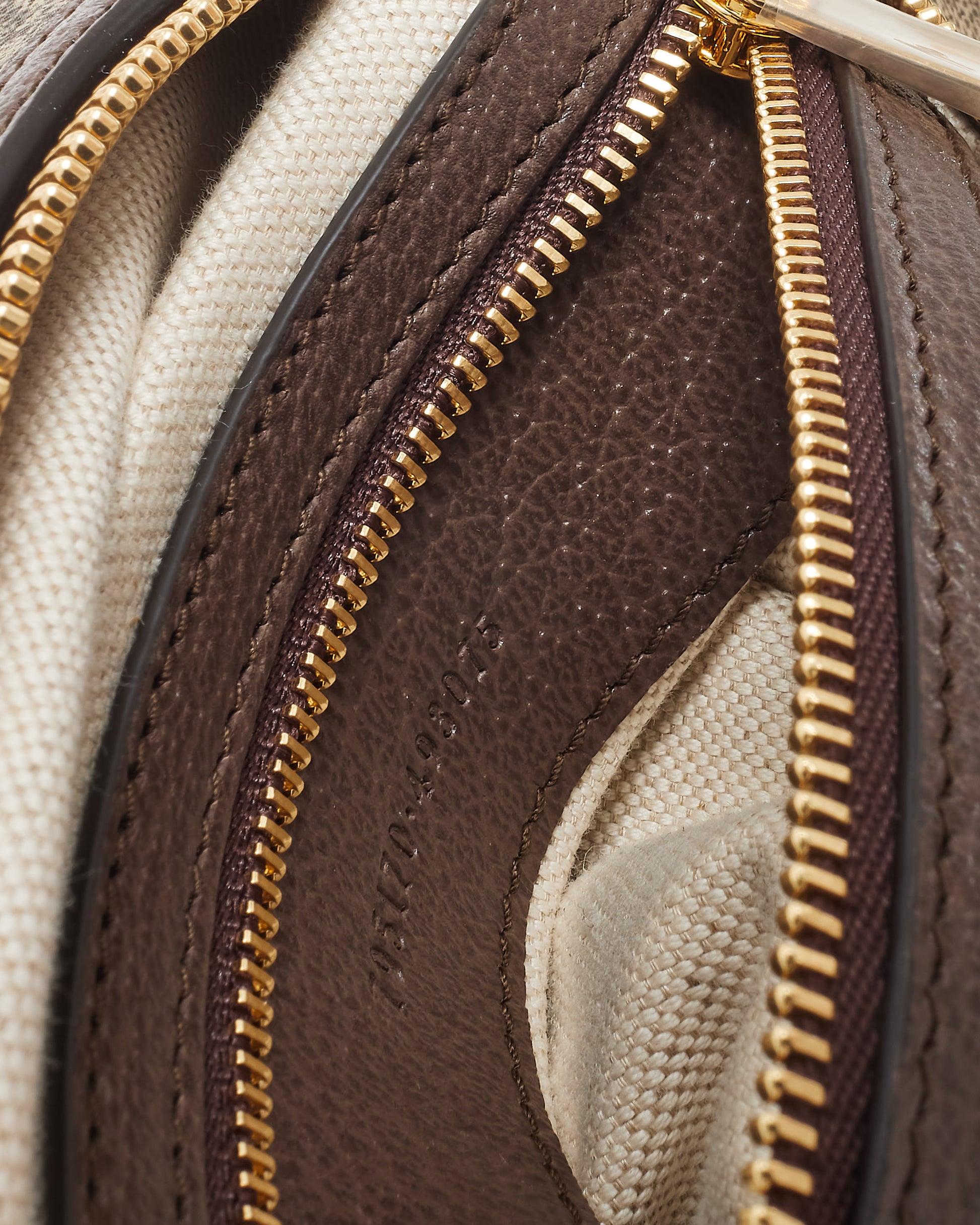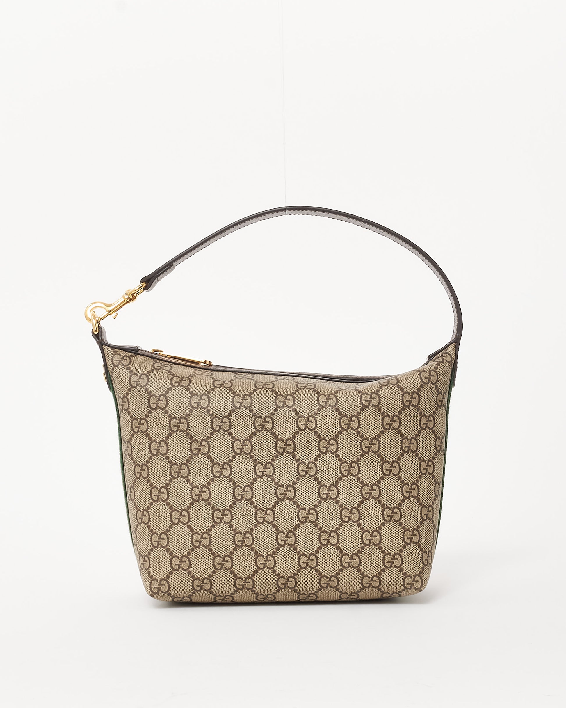 Compact, chic, and undeniably iconic, this authentic pre-owned Gucci Ophidia Super Mini Shoulder Bag in beige and ebony GG Supreme coated canvas is a must-have accessory for the modern fashion enthusiast. Crafted from Gucci’s signature GG Supreme canvas—a material celebrated for its durability and sustainability—this bag exudes timeless sophistication with a touch of contemporary charm.