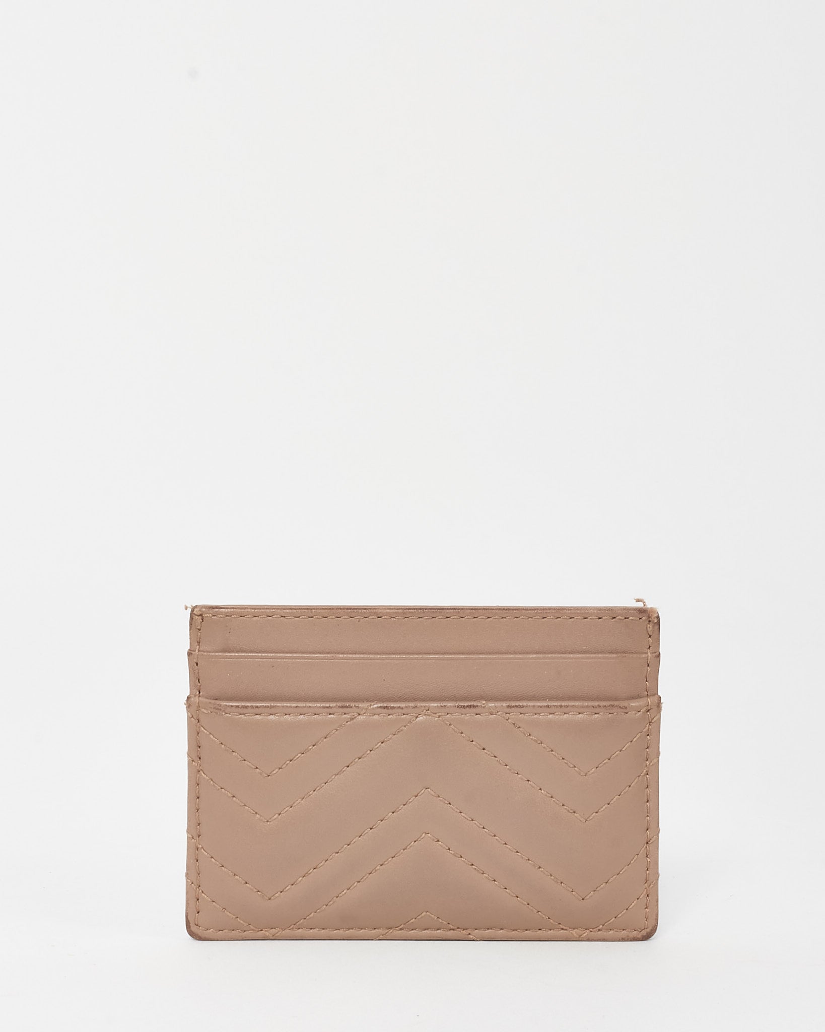 Beige Chevron Leather GG Marmont Card Case
