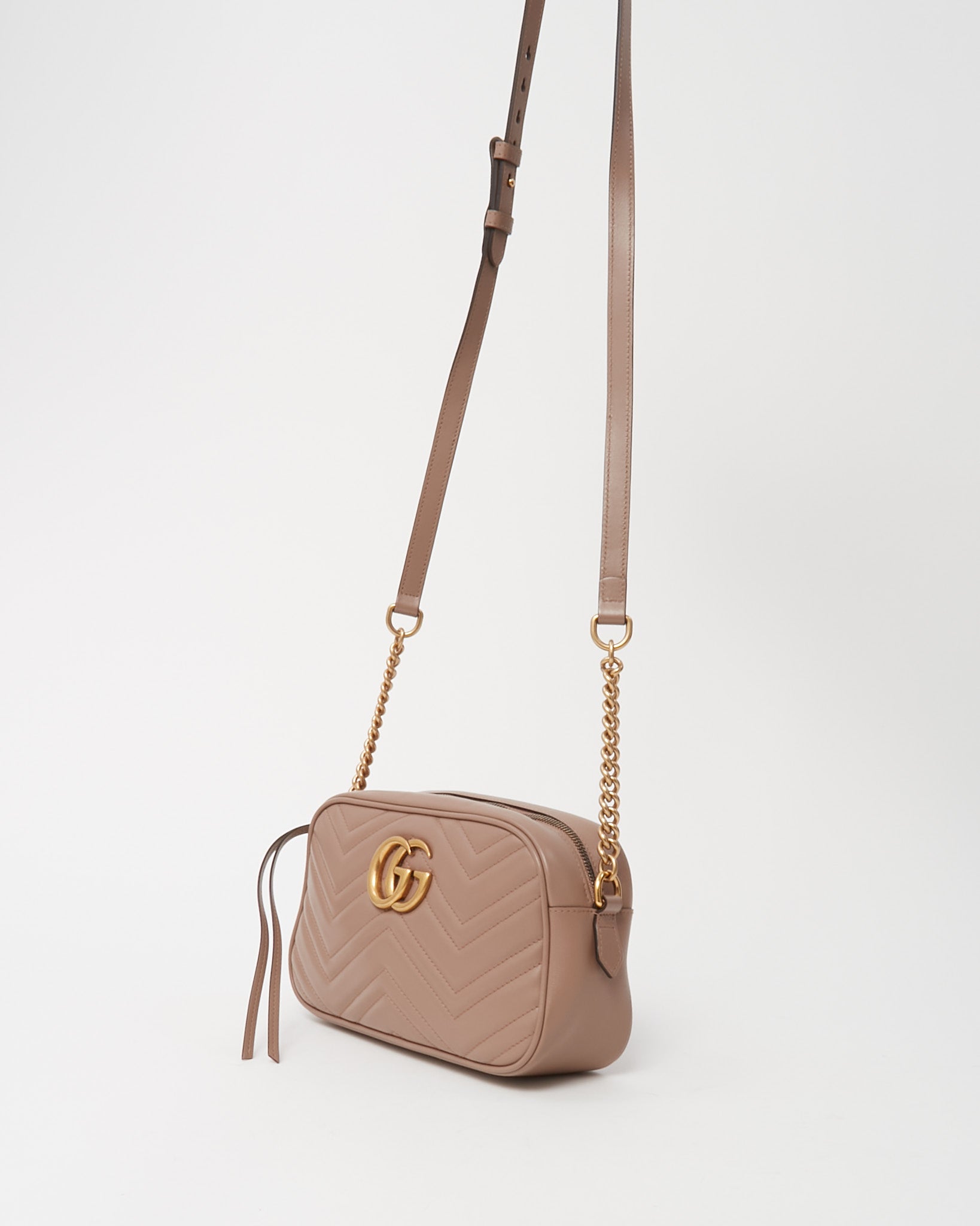 Beige (Dusty Pink) Matelassé Chevron Leather GG Marmont Small Camera Bag
