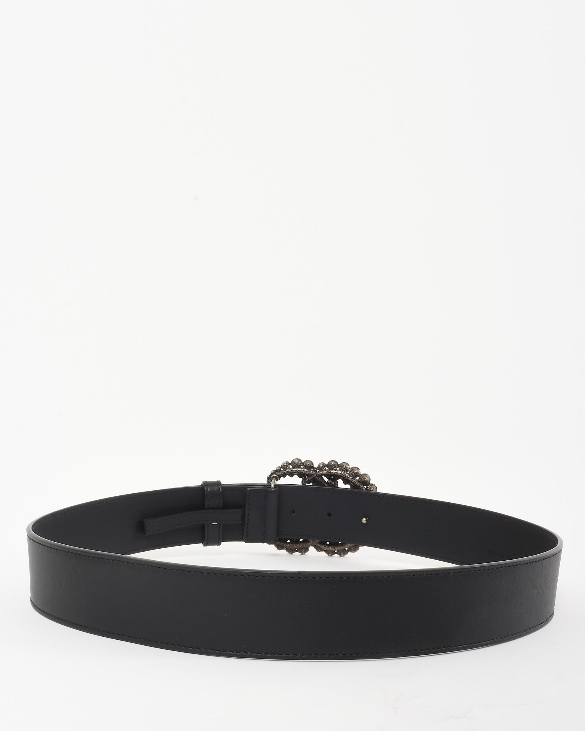 Black Calfskin Leather Crystal GG Marmont Belt - 85/34