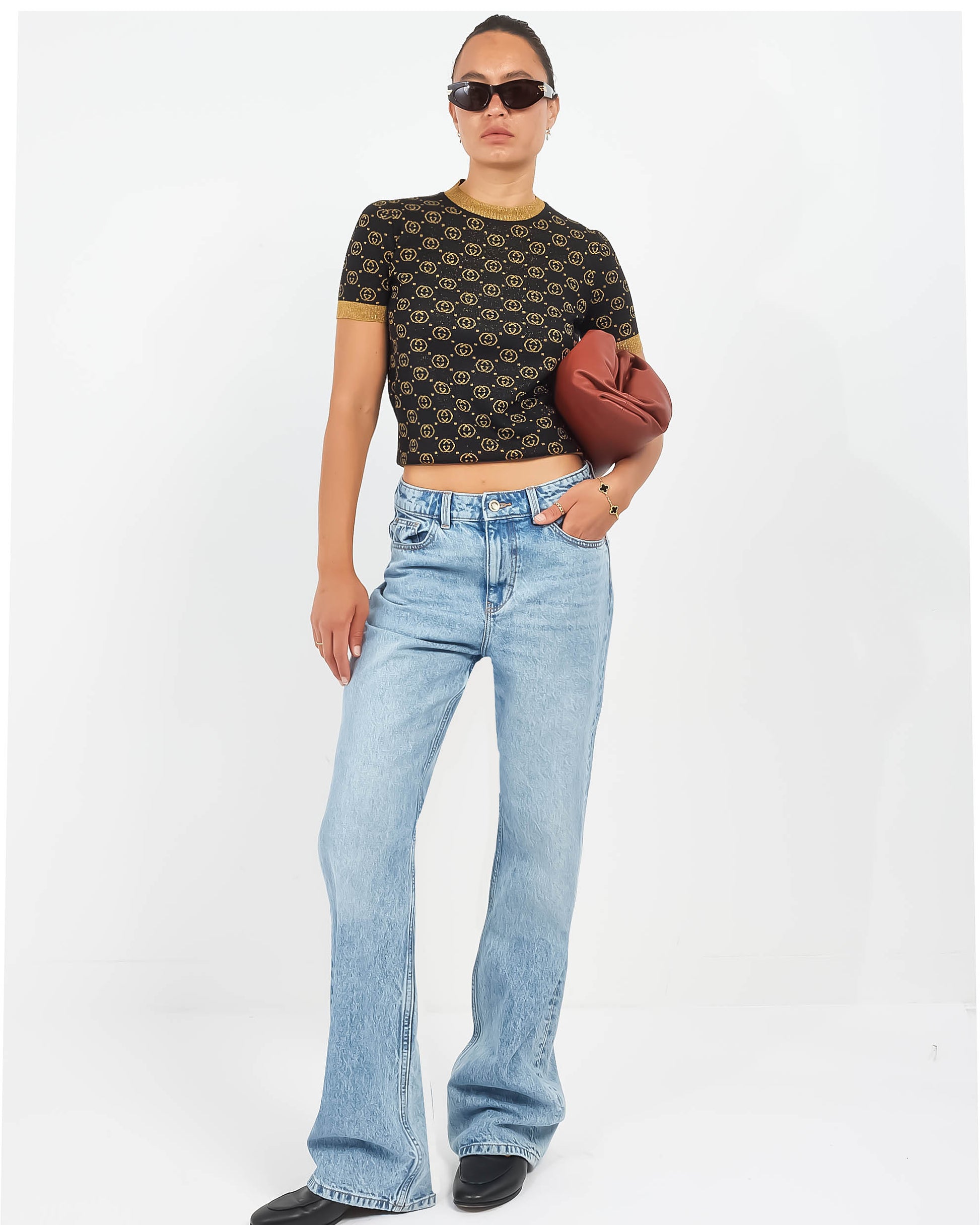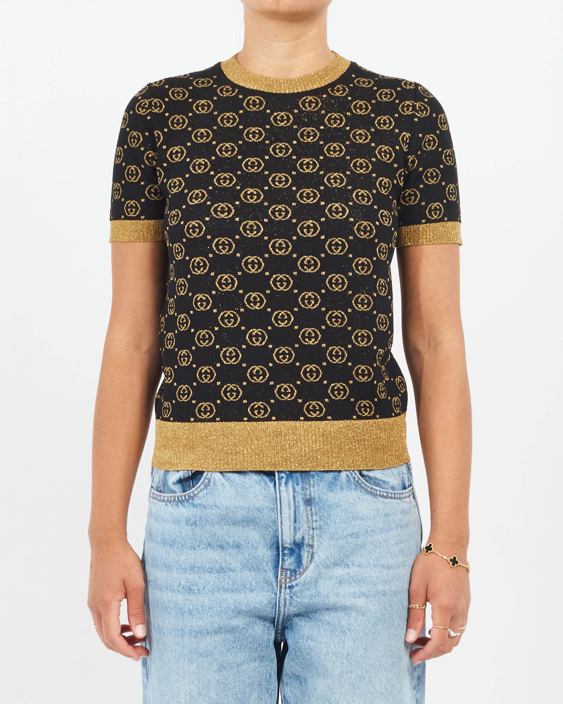 Explore Gucci's exquisite collection of clothing, featuring this certified pre-owned Black & Gold Sparkle Knit Monogram Sweater Top - XS. Embodying timeless elegance and modern sustainability, each piece, including favorites like this, is authenticated by Retyche. Discover sustainable luxury — shop our current treasures or find inspiration for your next coveted find.