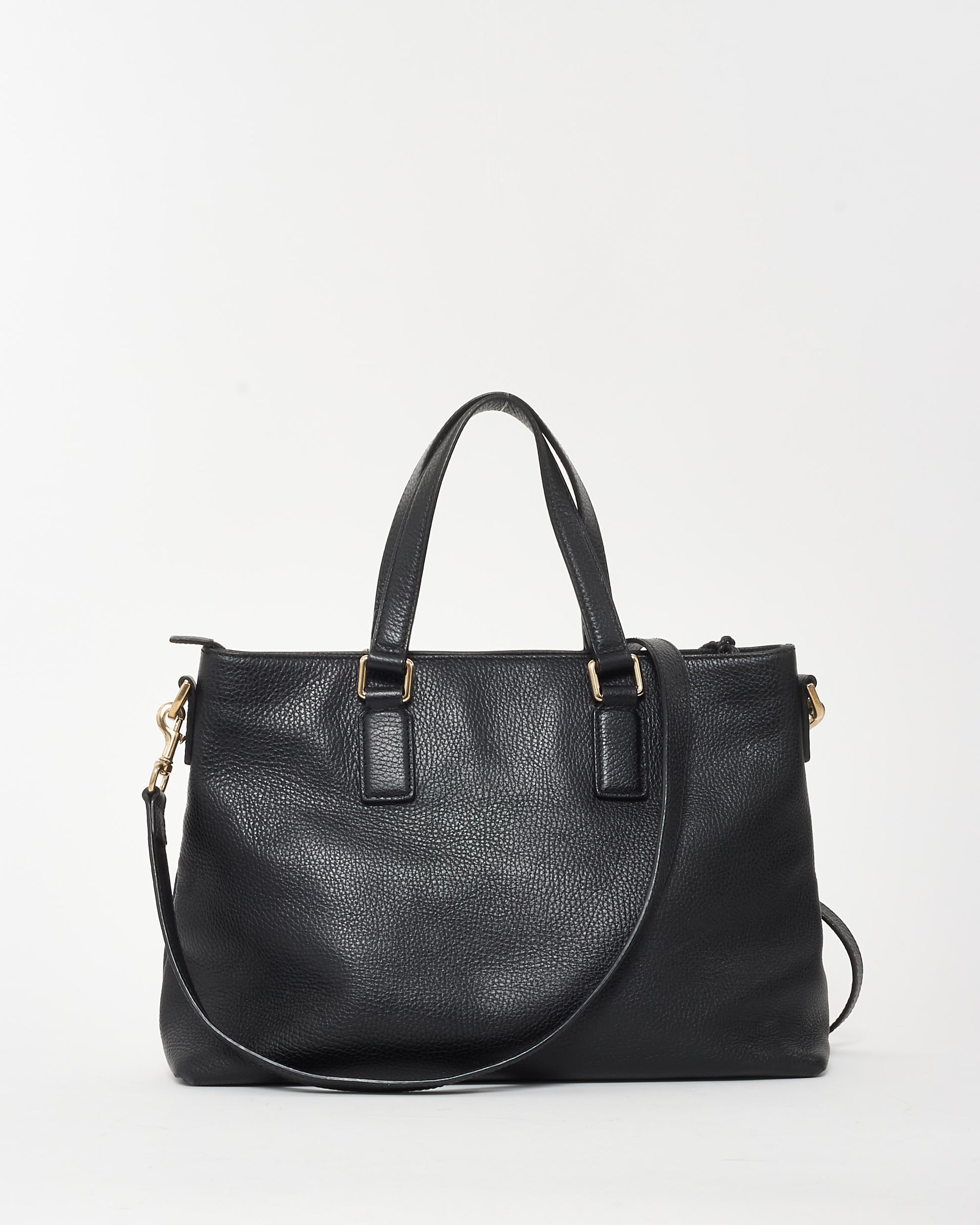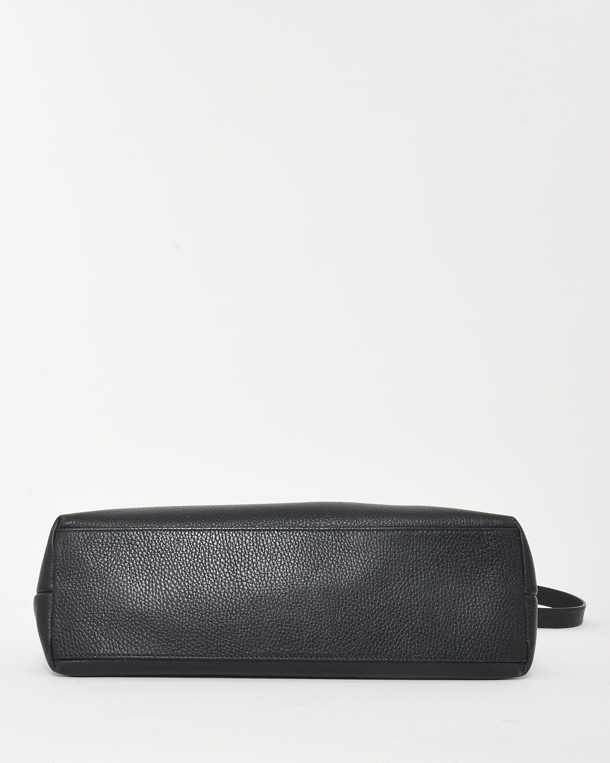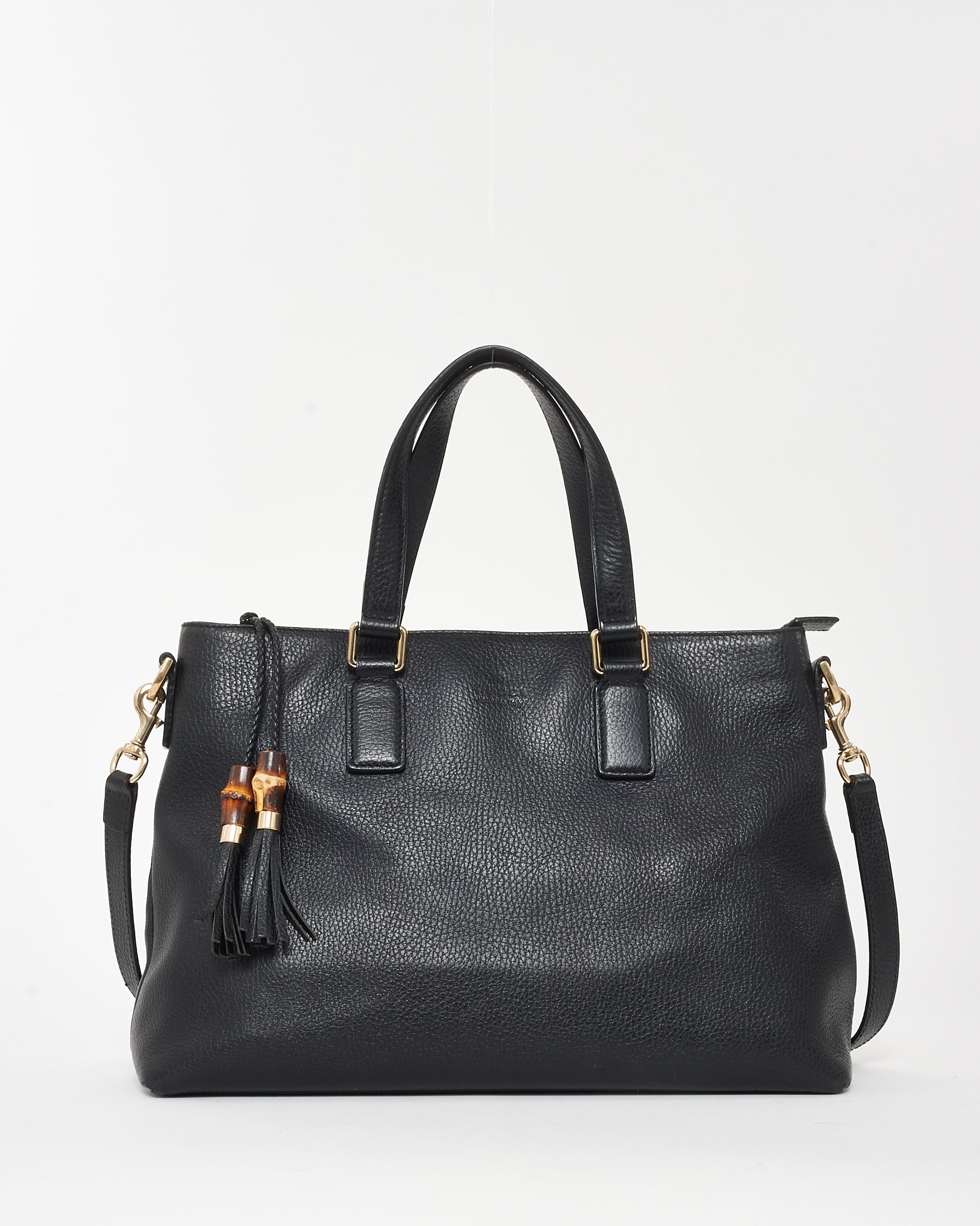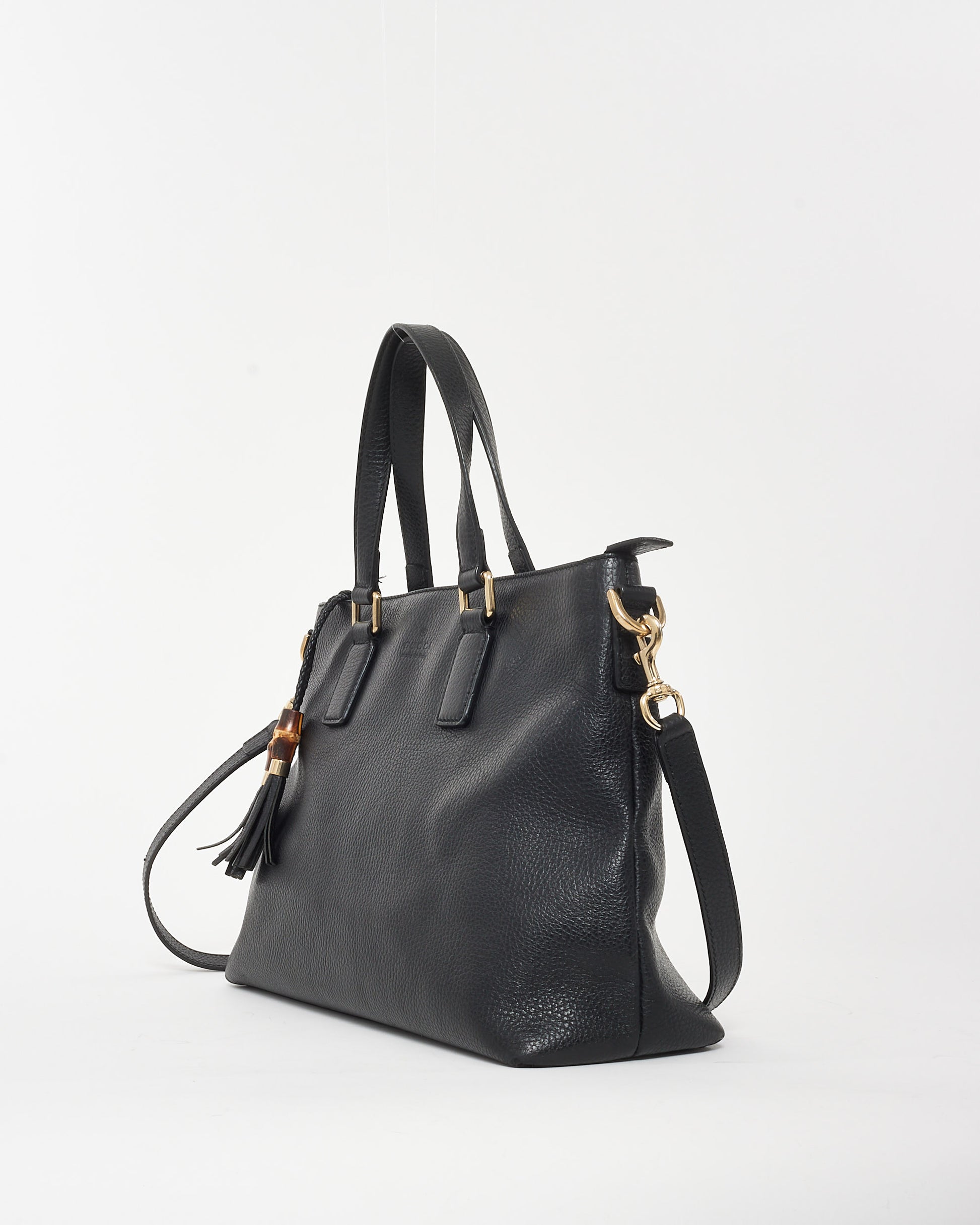 Black Grained Leather & Bamboo Tassel Shoulder Bag