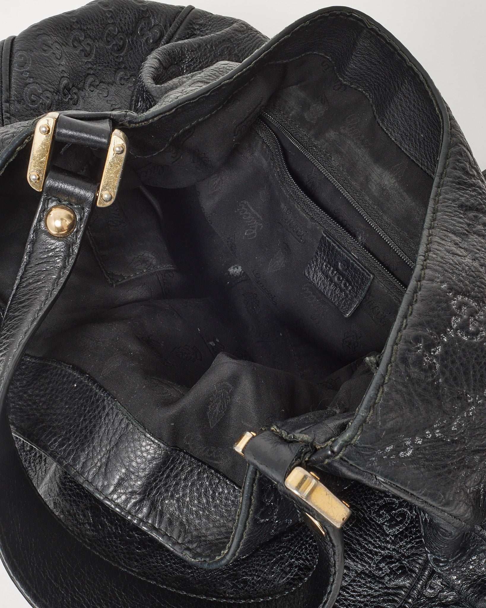 CONDITION SUMMARY: The item shows signs of wear and use. Surface scratches, slight darkening in handles, watermarks, patina and other indications of wear may be visible. Signs of wear or damages will be shown in the images. Strap was replaced by Gucci.