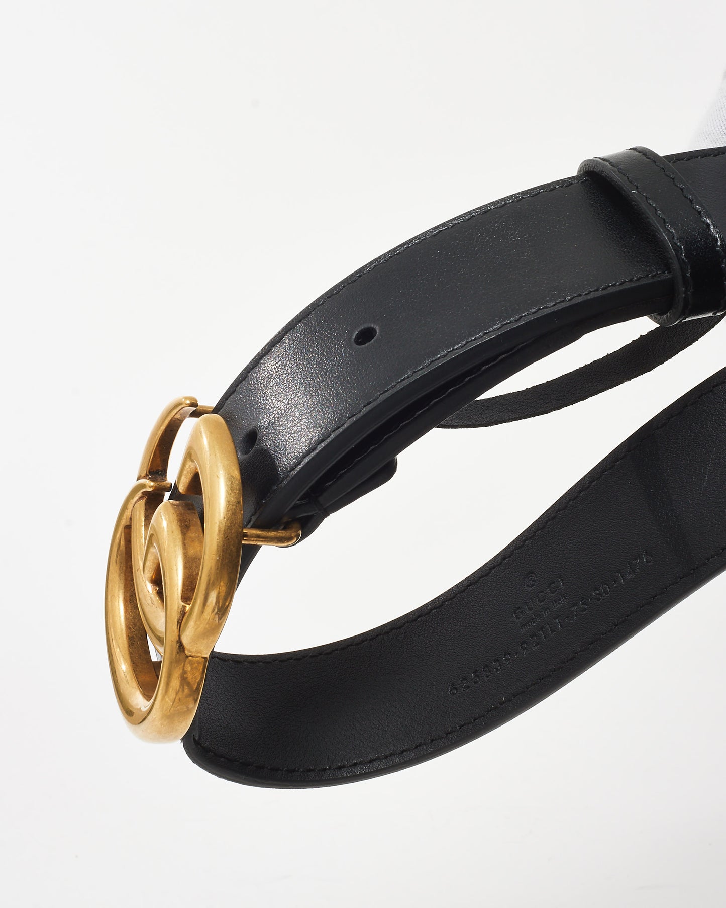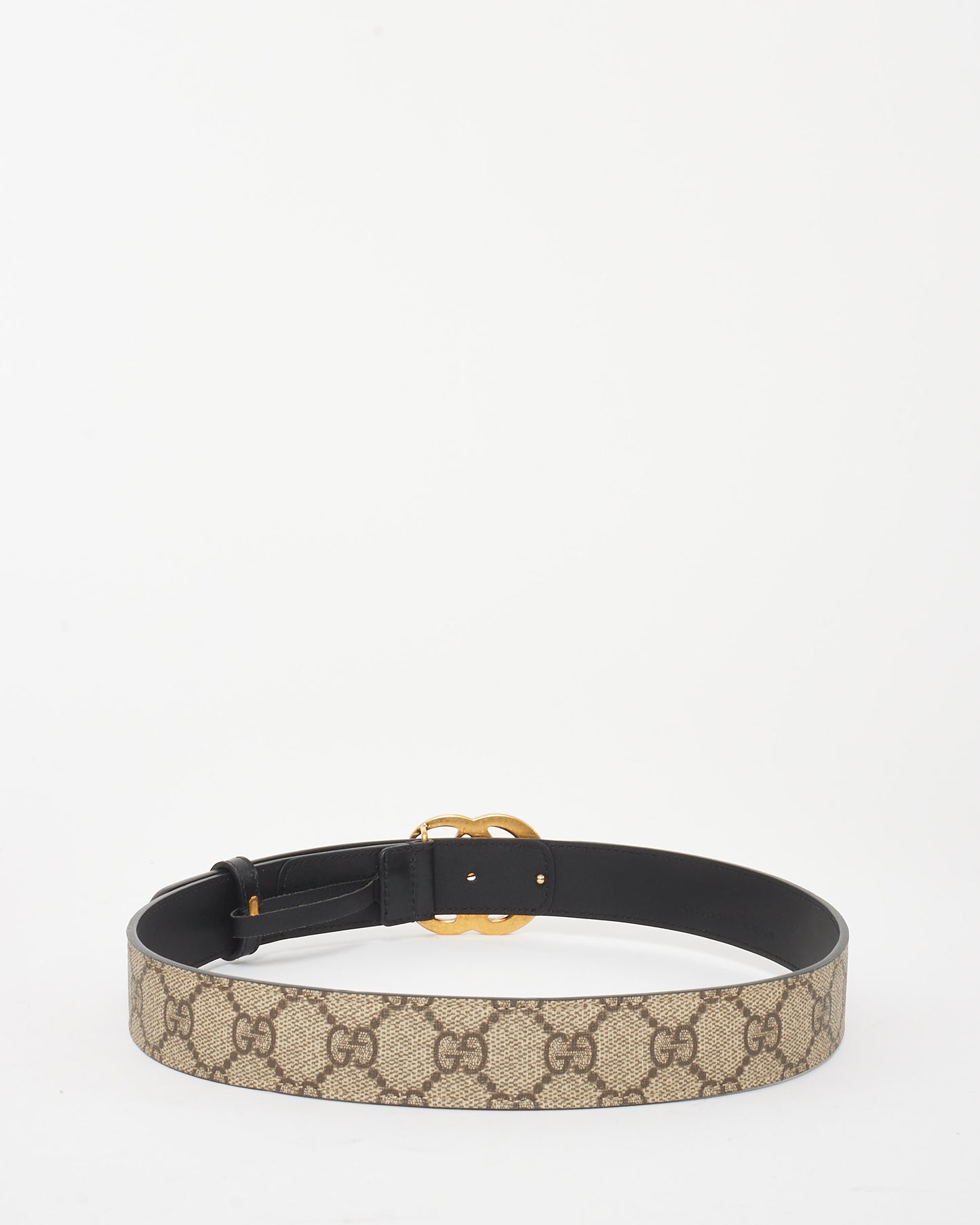 Black Leather and Beige Monogram Supreme Coated Canvas GG Marmont Belt - 75/30