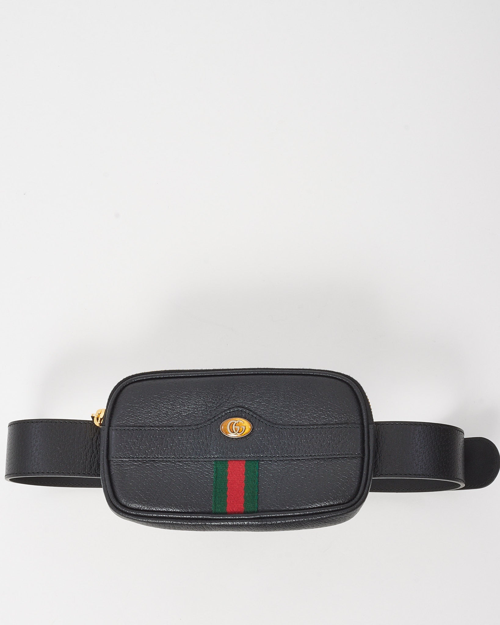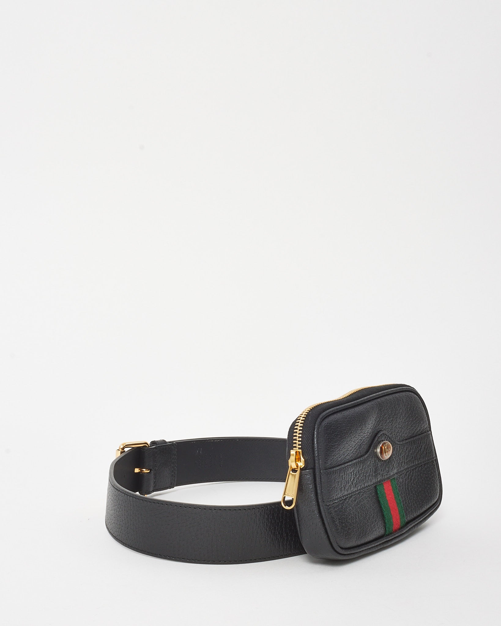A bold fusion of heritage and function, this pre-loved authentic Gucci Ophidia belt bag is crafted in black grained leather and accented with the iconic green and red Web stripe. Featuring a structured silhouette and vintage-inspired gold GG logo, this hands-free design offers both practicality and statement appeal. The adjustable belt strap ensures a custom fit at the waist or across the chest, making it a versatile choice for everyday luxury.