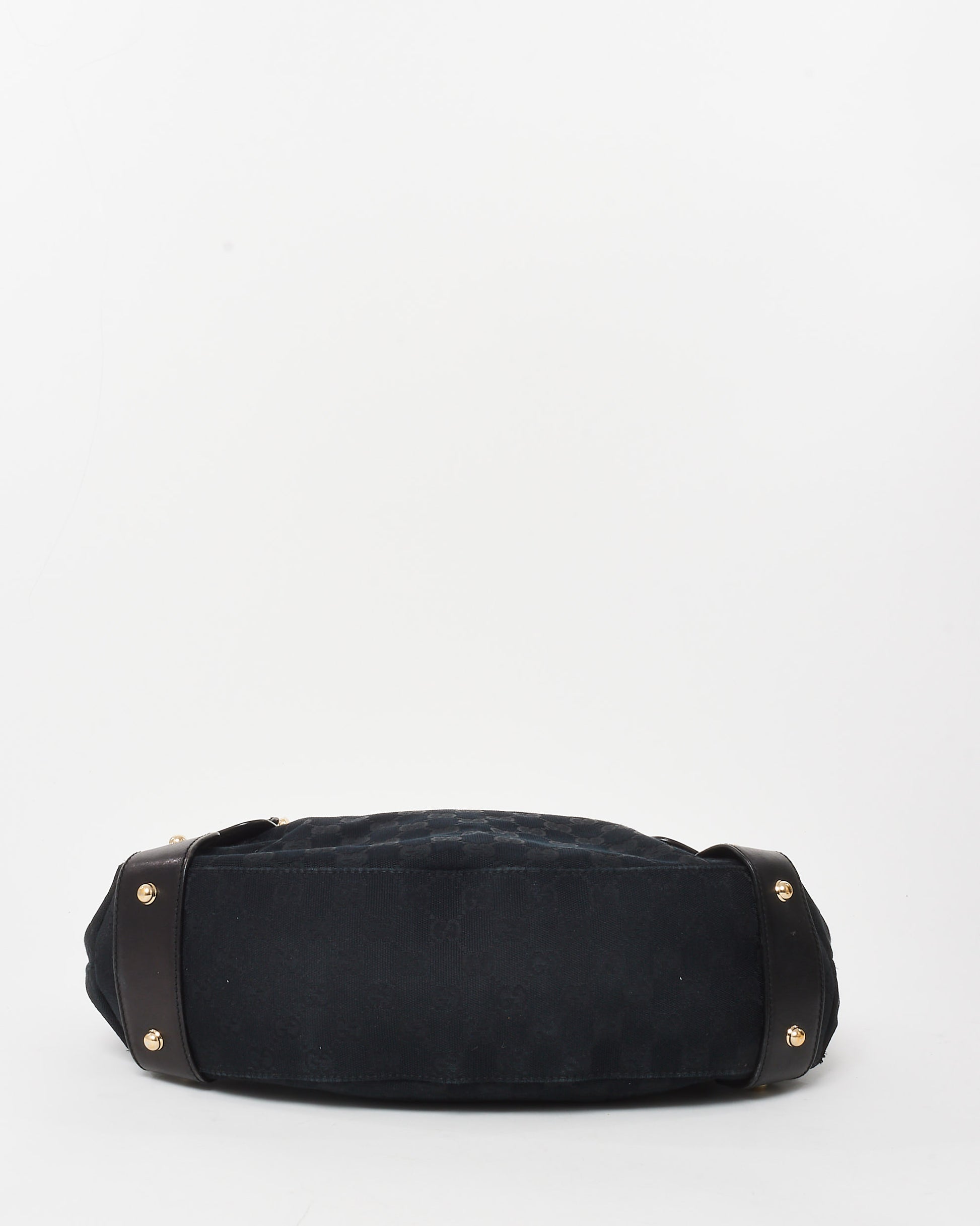A timeless blend of sophistication and functionality, the pre-owned authentic Gucci Black Monogram GG Canvas Pelham Tote Bag is a refined everyday essential. Crafted from durable black GG monogram canvas, this tote features leather trim and braided leather handles, adding a luxurious and structured touch.