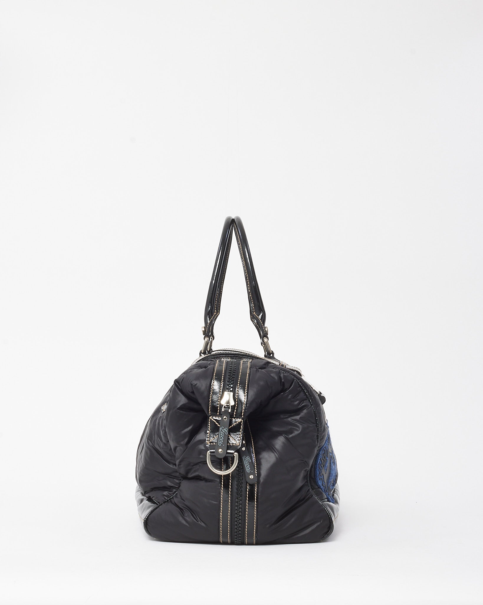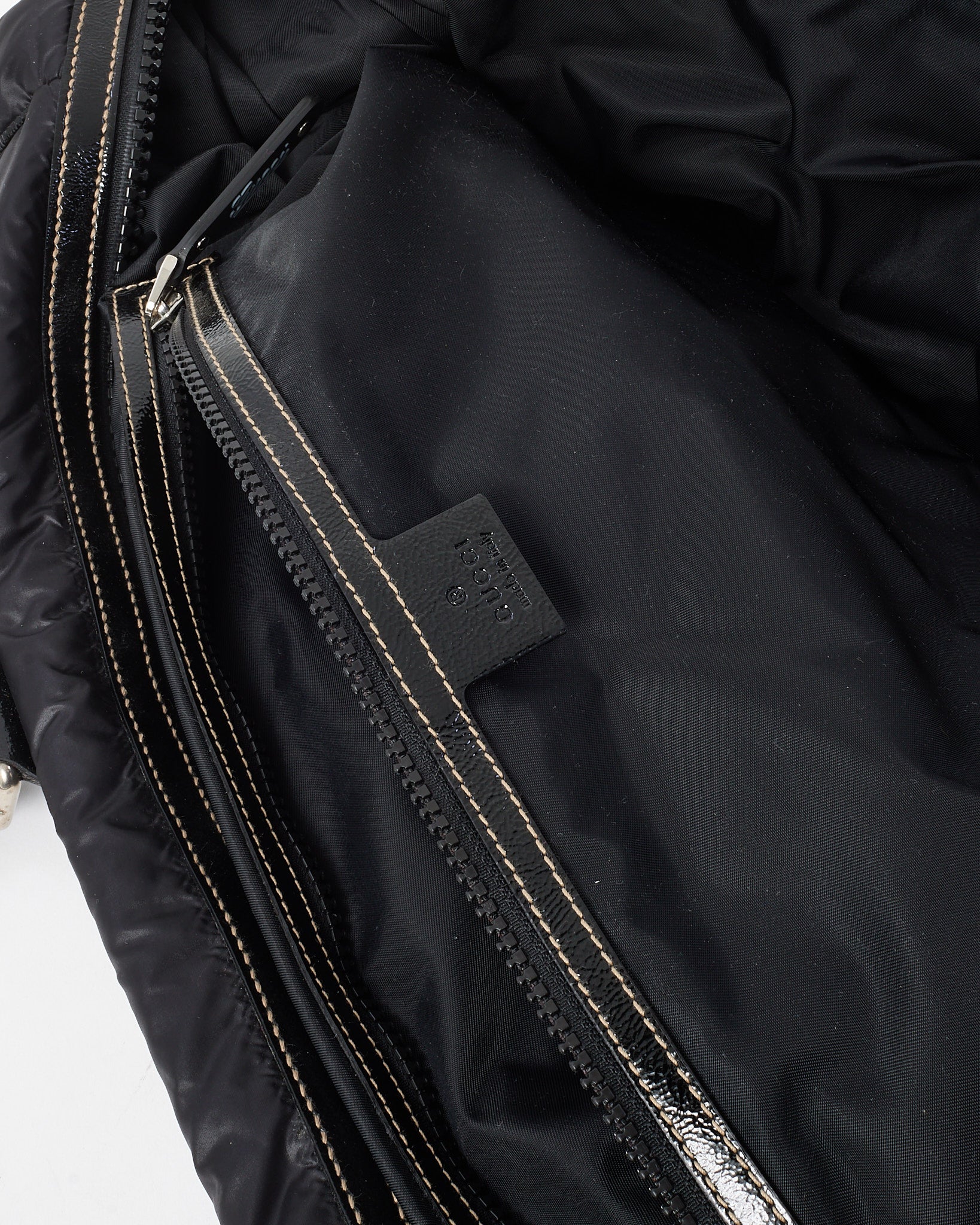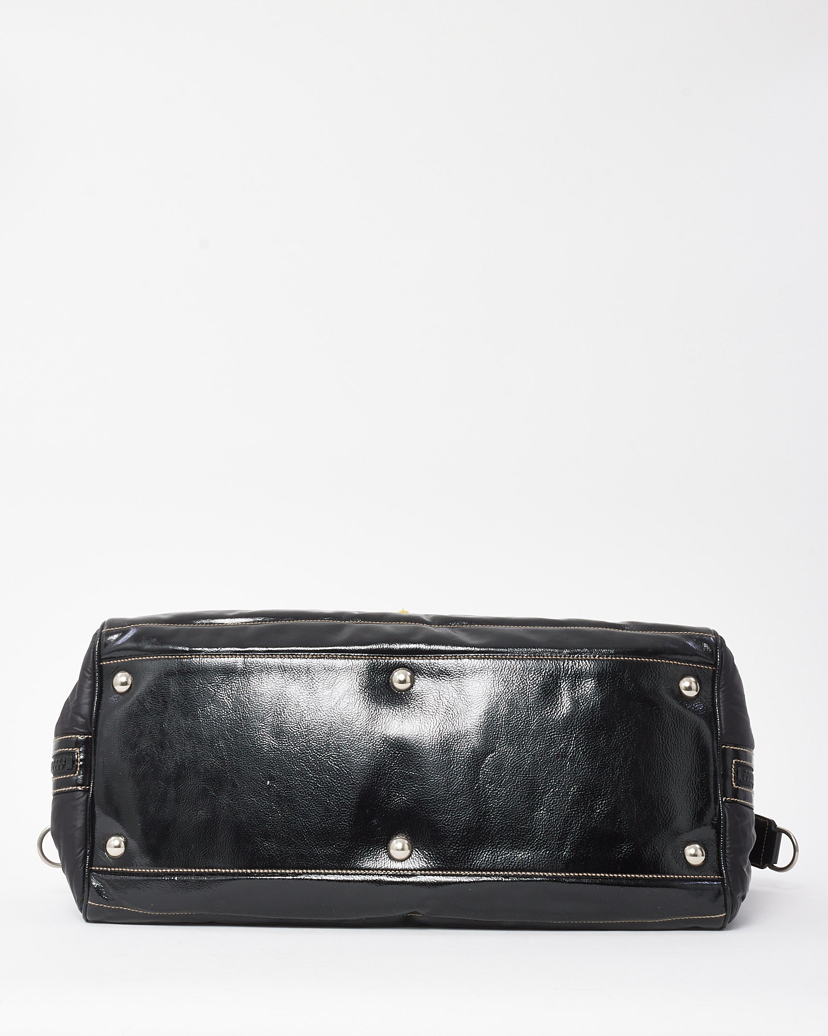 Elevate your travel essentials with this pre-loved authentic Gucci Black Nylon Logo Patches Duffle Bag. Crafted from durable black nylon and accented with leather trim, this spacious carryall features distinctive Gucci logo patches that nod to the brand’s heritage with a sporty edge. The double zip-top opens to a roomy interior, perfect for weekend getaways or gym runs. Finished with silver-tone hardware and reinforced top handles, this duffle blends utility and signature style in a bold, modern silhouette.