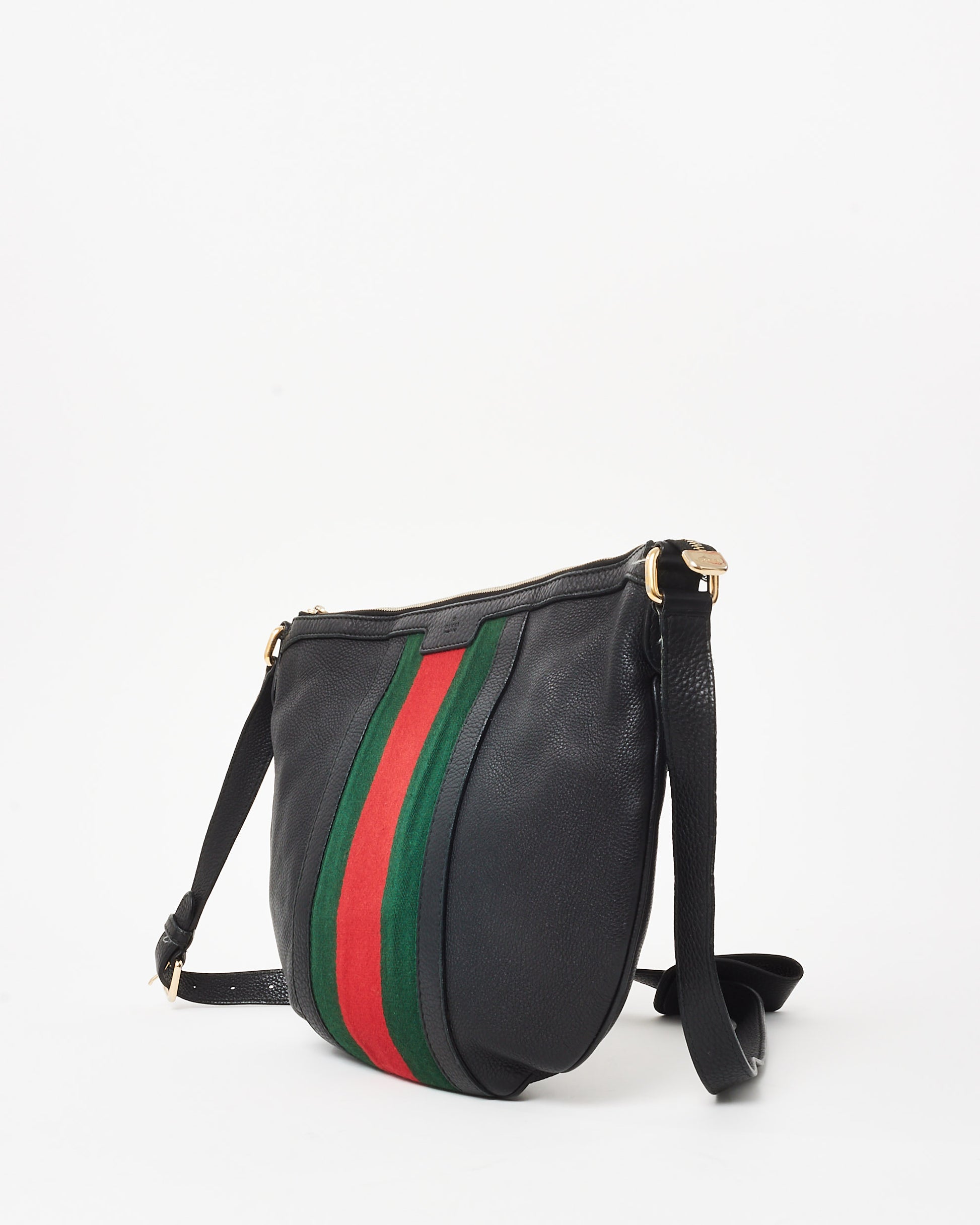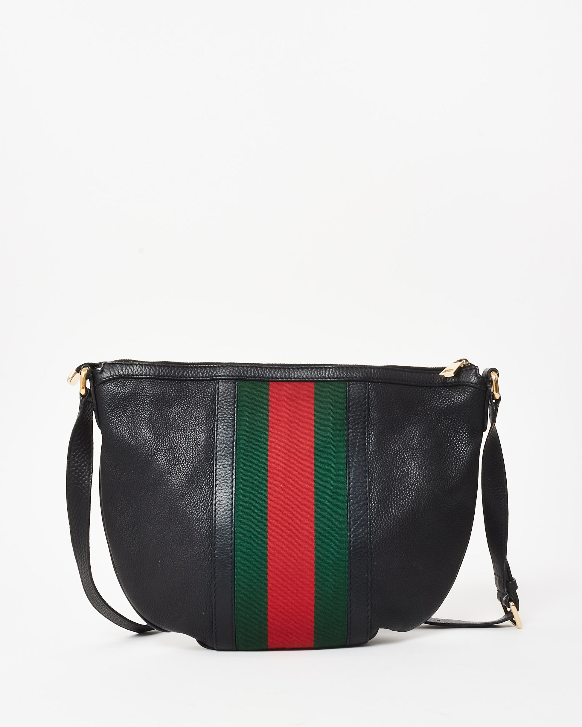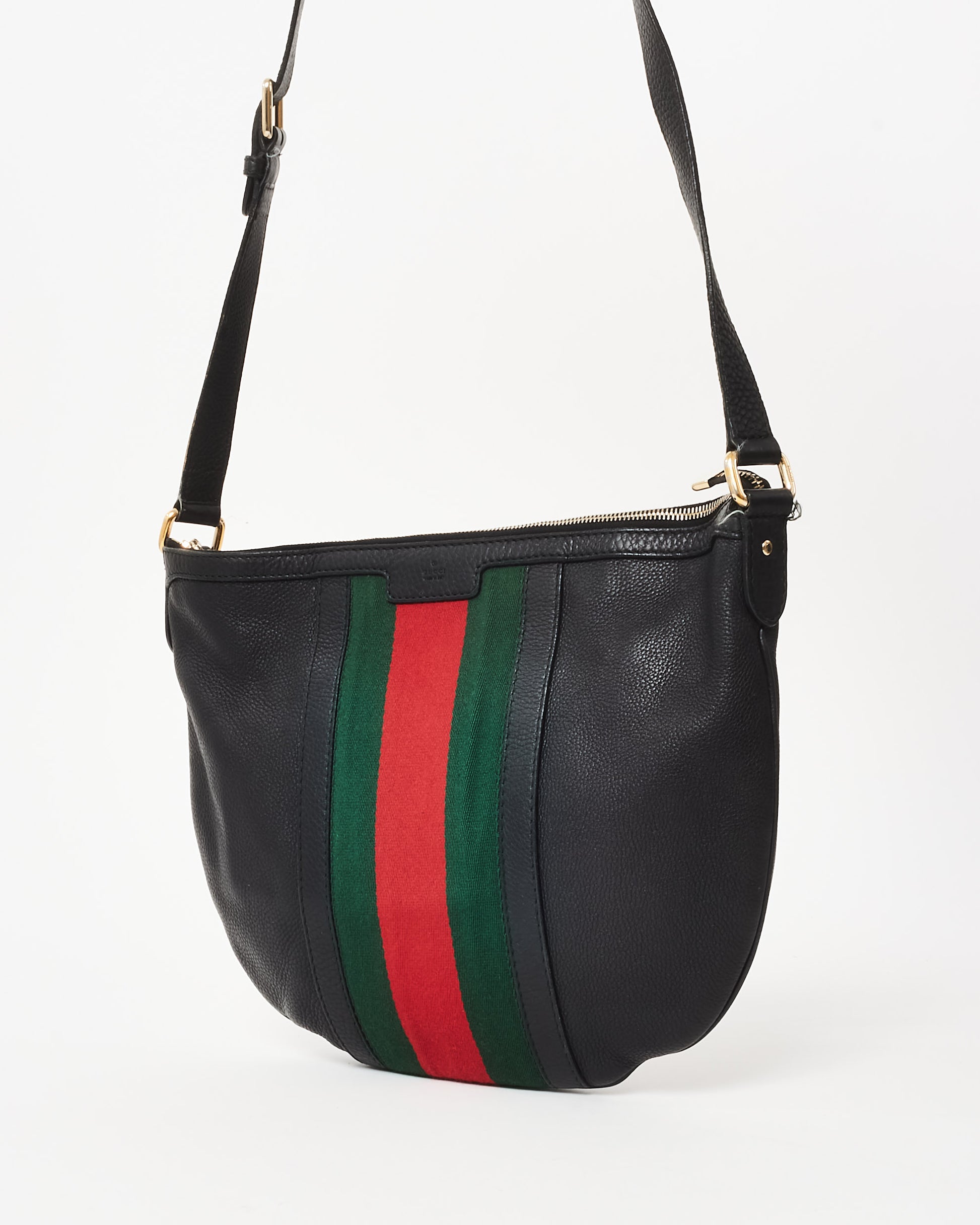 Black Pebbled Calfskin Vintage Medium Web Half Moon Crossbody Bag