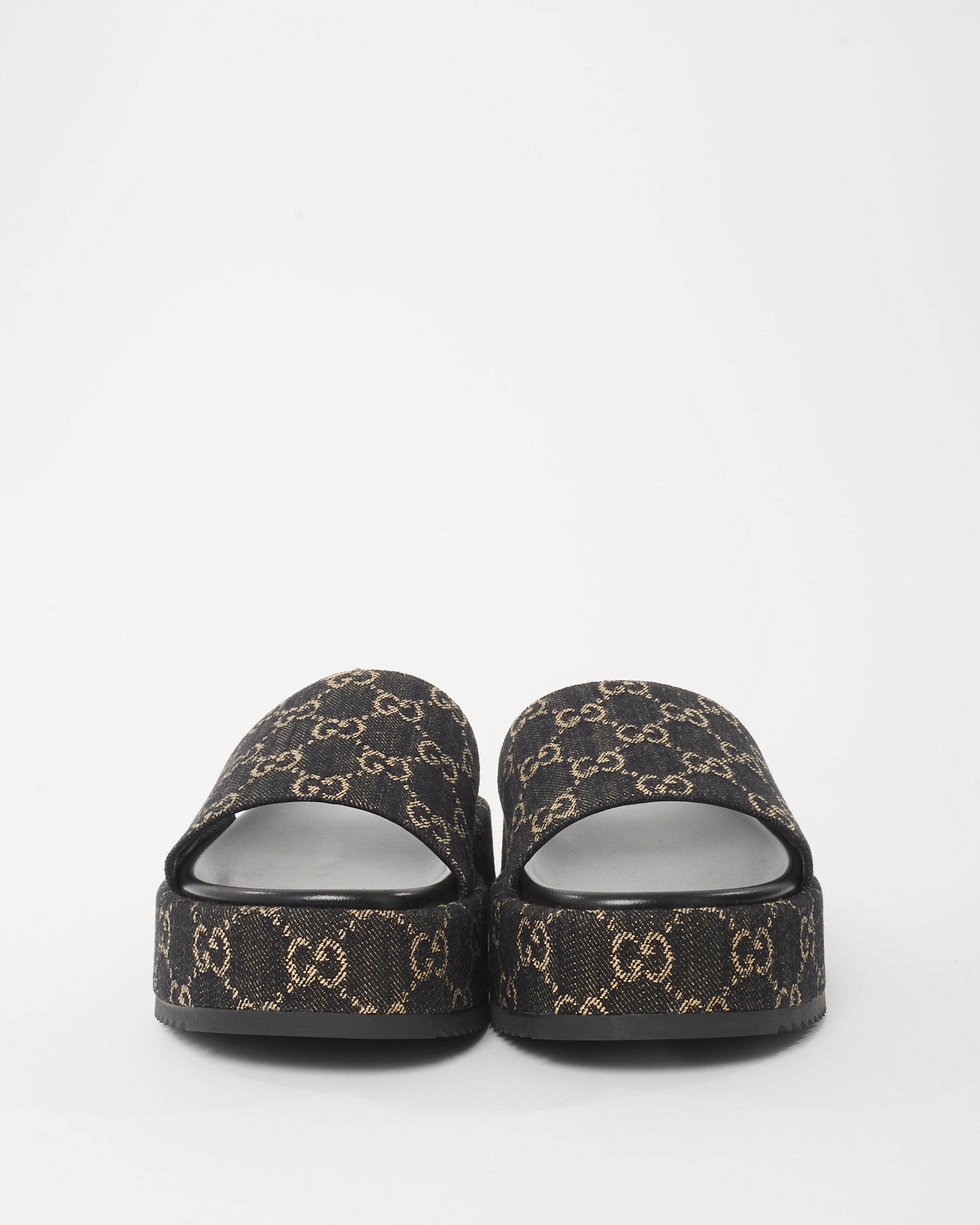 Black & White Jacquard GG Monogram Denim Platform Slides - 41
