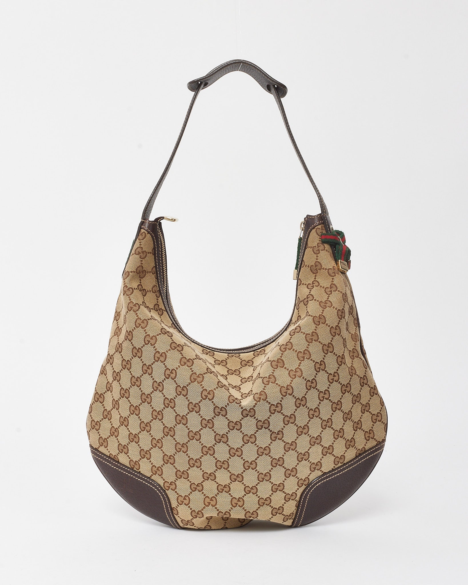 A timeless everyday essential, this pre-loved authentic Gucci Princy Hobo is crafted from the brand’s iconic GG monogram canvas in a classic brown colorway. Tan leather trim and delicate bow details at the handles add a feminine touch, while gold-tone hardware enhances its vintage-inspired charm. The hobo silhouette offers a comfortably slouched shape with a zip-top closure and a spacious interior perfect for carrying daily essentials. A chic and functional staple for the modern wardrobe.