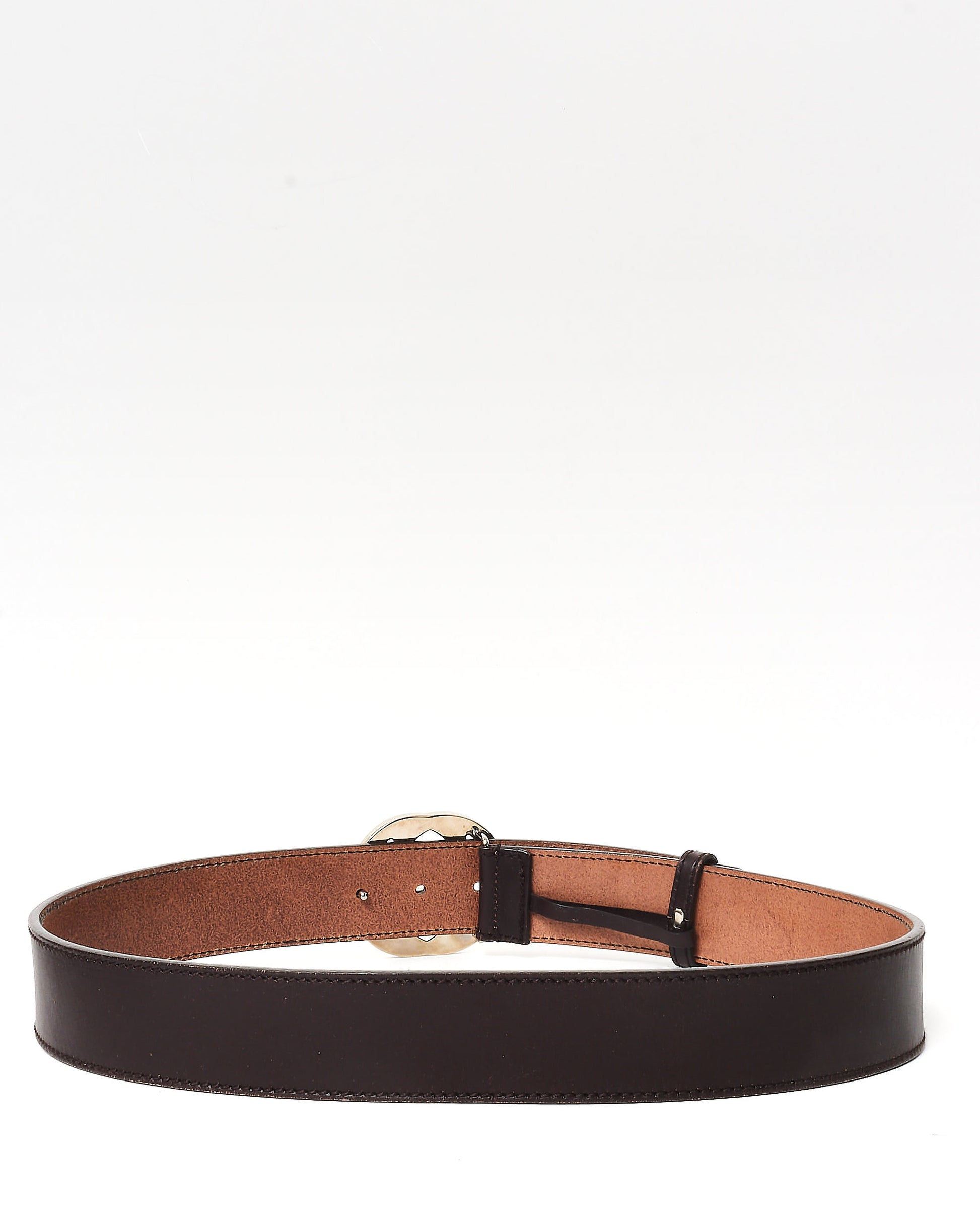 Timelessly elegant with a modern touch, the pre-owned authentic Gucci Brown Leather Silver Interlocking GG Belt is a refined accessory that seamlessly blends sophistication with everyday versatility. Crafted from smooth brown leather, this belt offers a polished yet effortless aesthetic, making it a staple in any wardrobe.