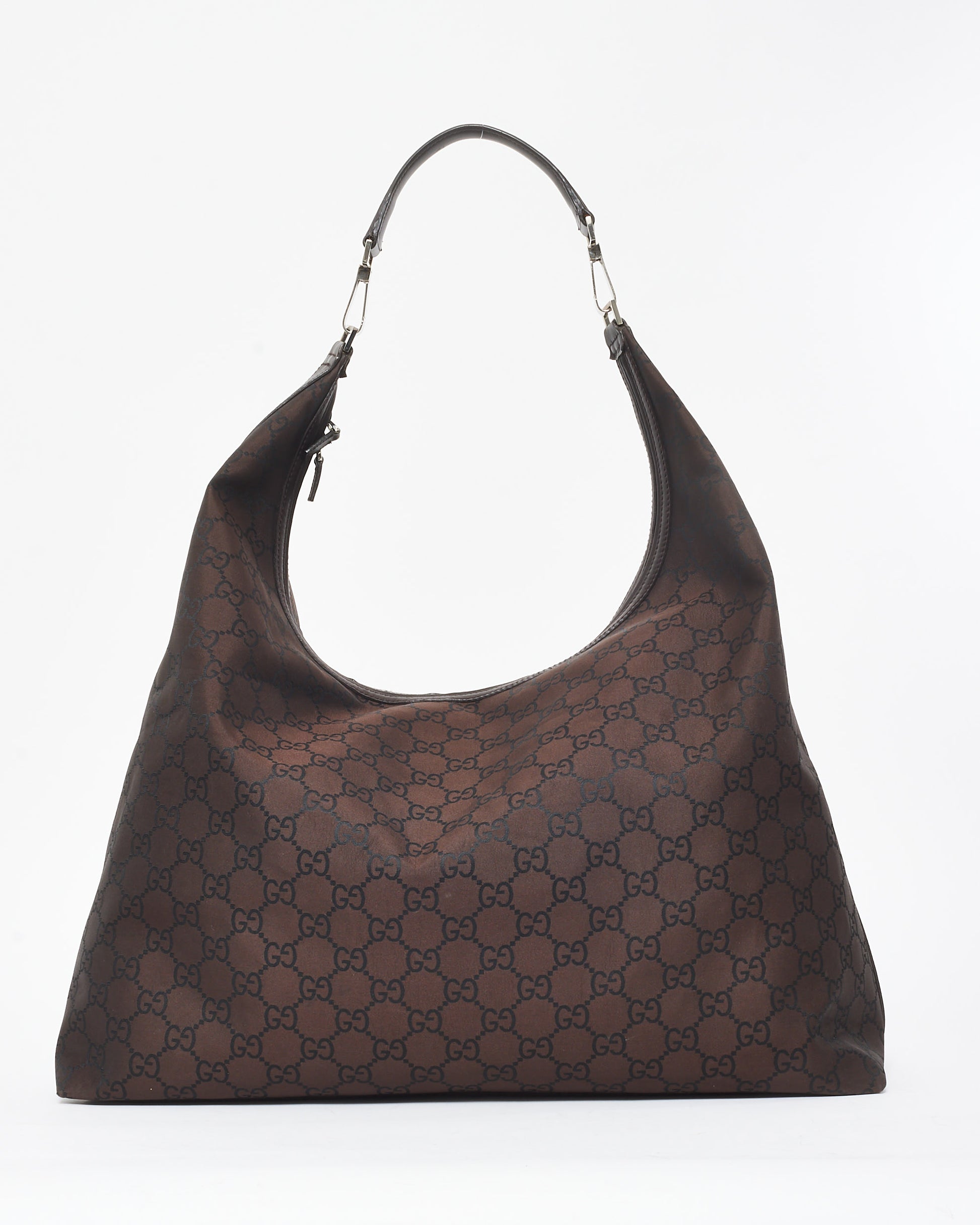 Explore Gucci's exquisite collection of handbags, featuring this certified pre-owned Brown Monogram Canvas Oversized Hobo Weekender Shoulder Bag. Embodying timeless elegance and modern sustainability, each piece, including favorites like this, is authenticated by Retyche. Discover sustainable luxury — shop our current treasures or find inspiration for your next coveted find.