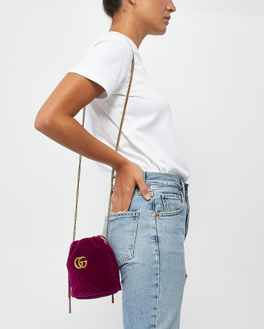 Fuchsia Velvet GG Marmont Mini Bucket Bag