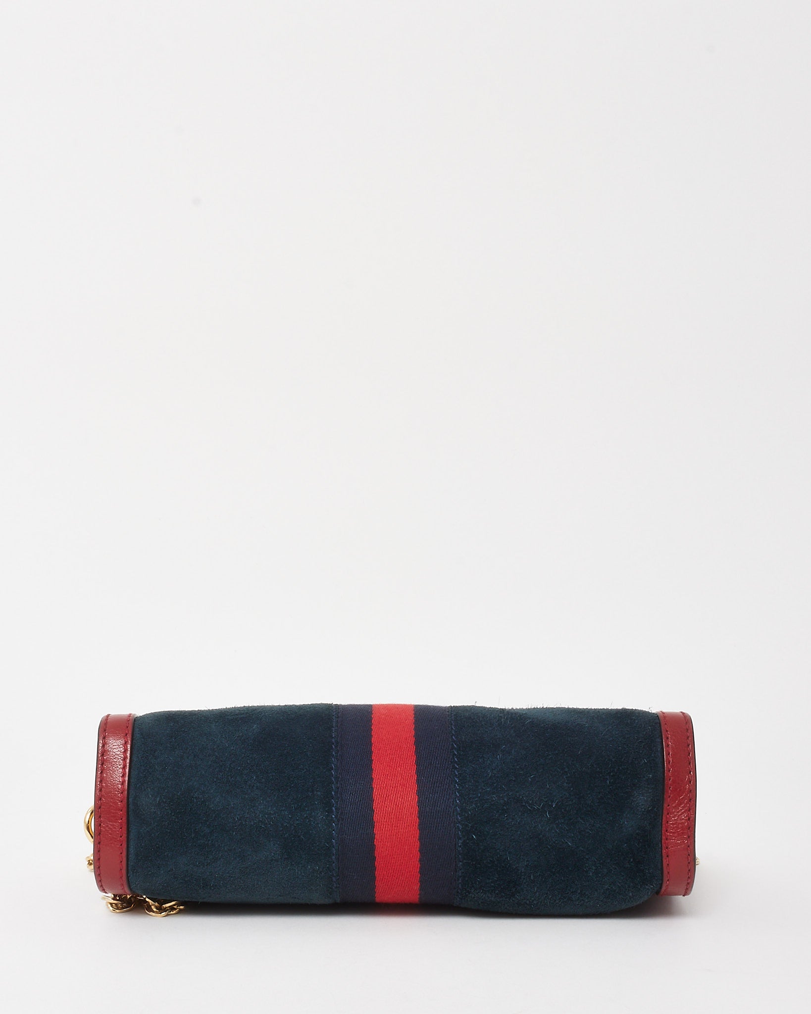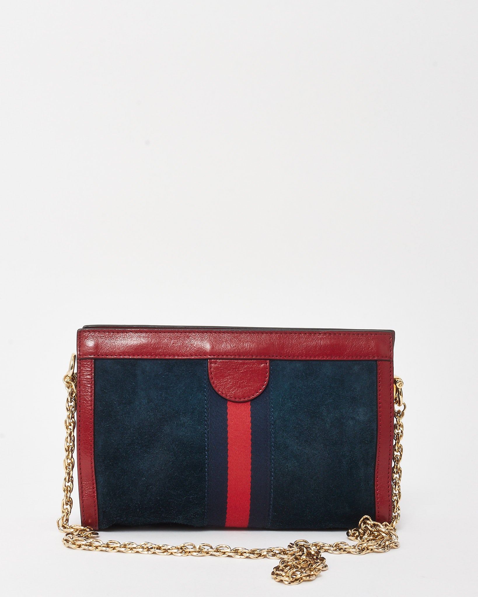 Navy Suede Red Glazed Calfskin Leather Trim Ophidia Chain Shoulder Bag