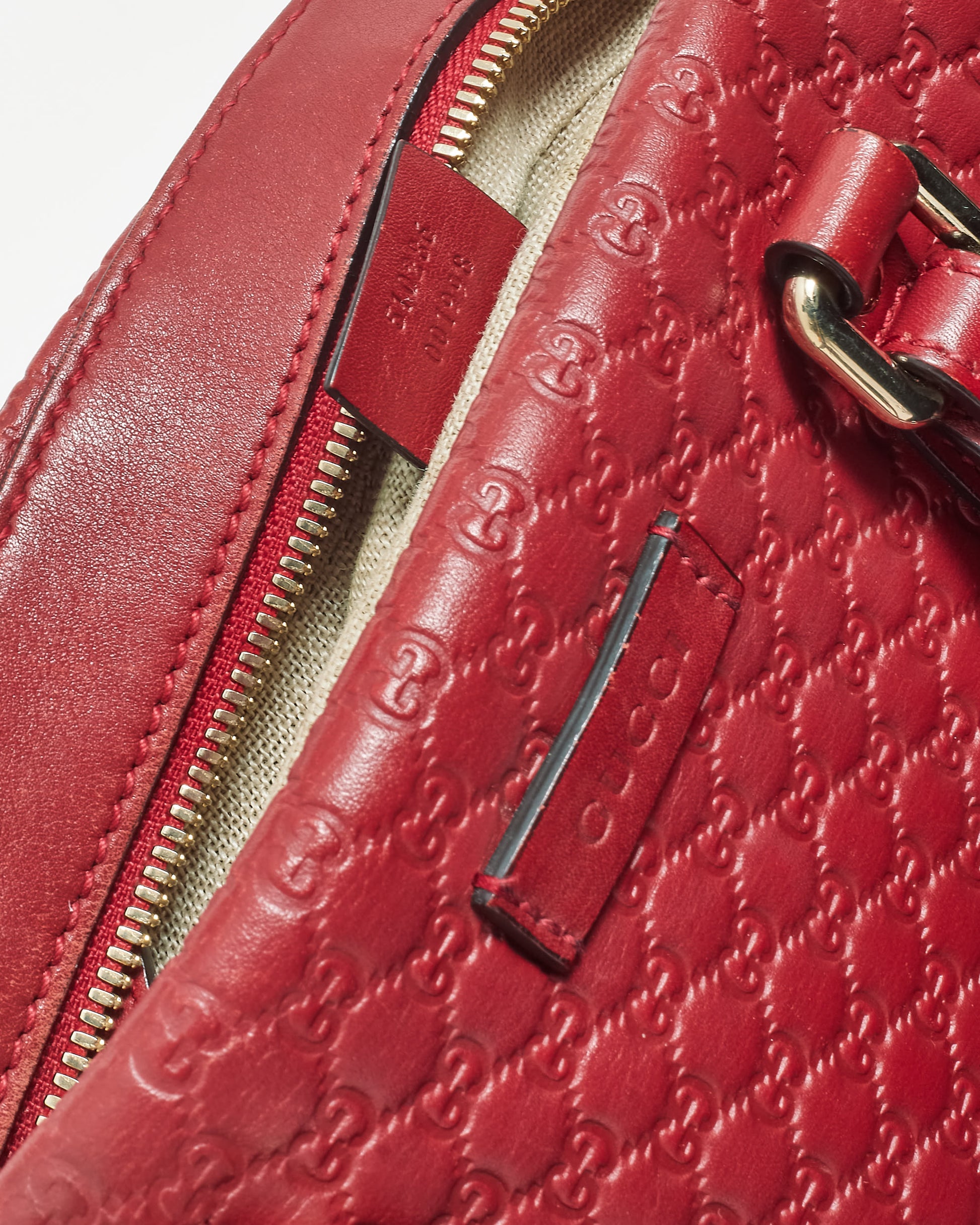 This authentic pre-owned Gucci Red Leather Guccissima Mini Duffle Bag is a compact and stylish accessory that embodies the brand’s signature elegance. Crafted from high-quality red Guccissima leather, it features the iconic interlocking GG pattern embossed throughout, offering a subtle yet distinctive look. The bag is designed with dual top handles and an optional shoulder strap, providing versatility for hand or shoulder carry. Shop pre-owned authentic Gucci at Retyche.