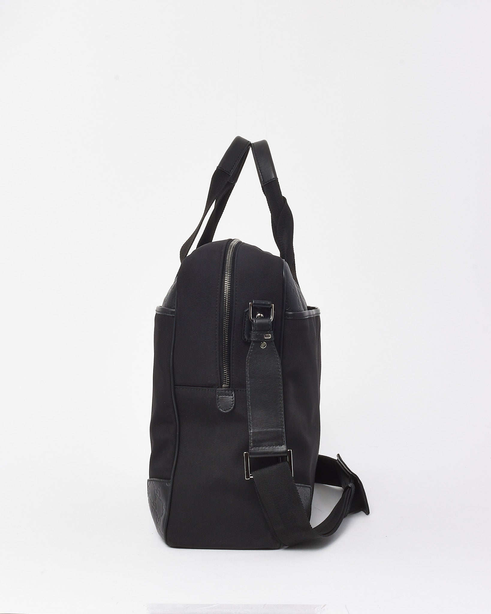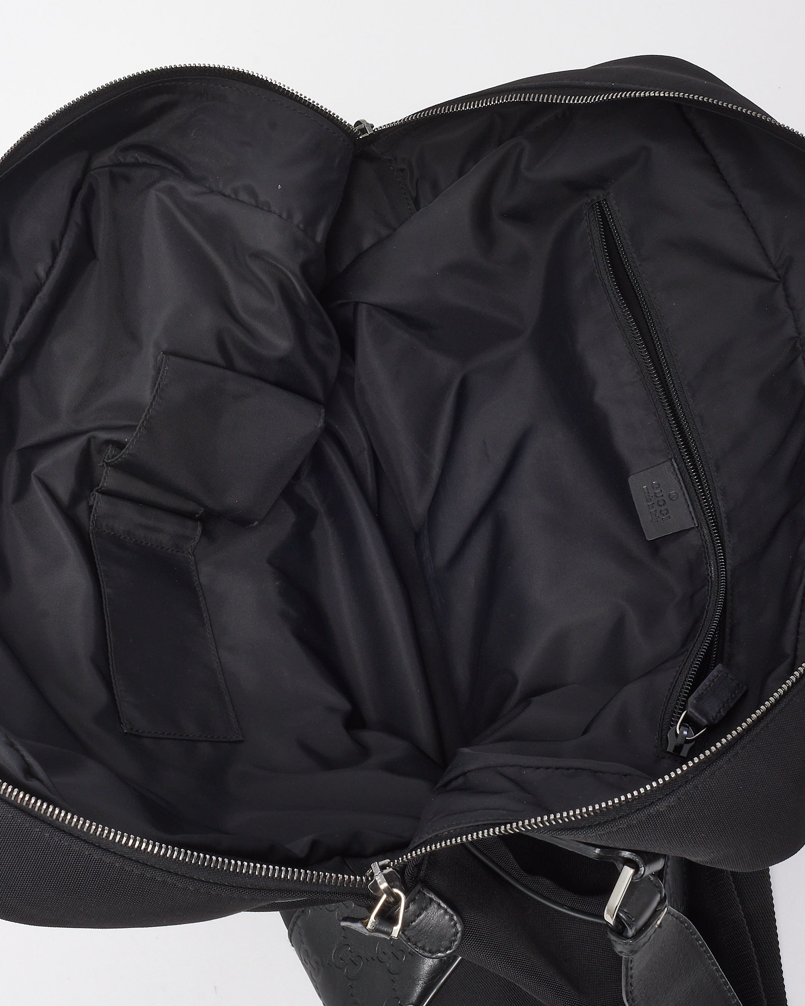 Vintage Black Guccissima Embossed Leather and Nylon Travel Bag
