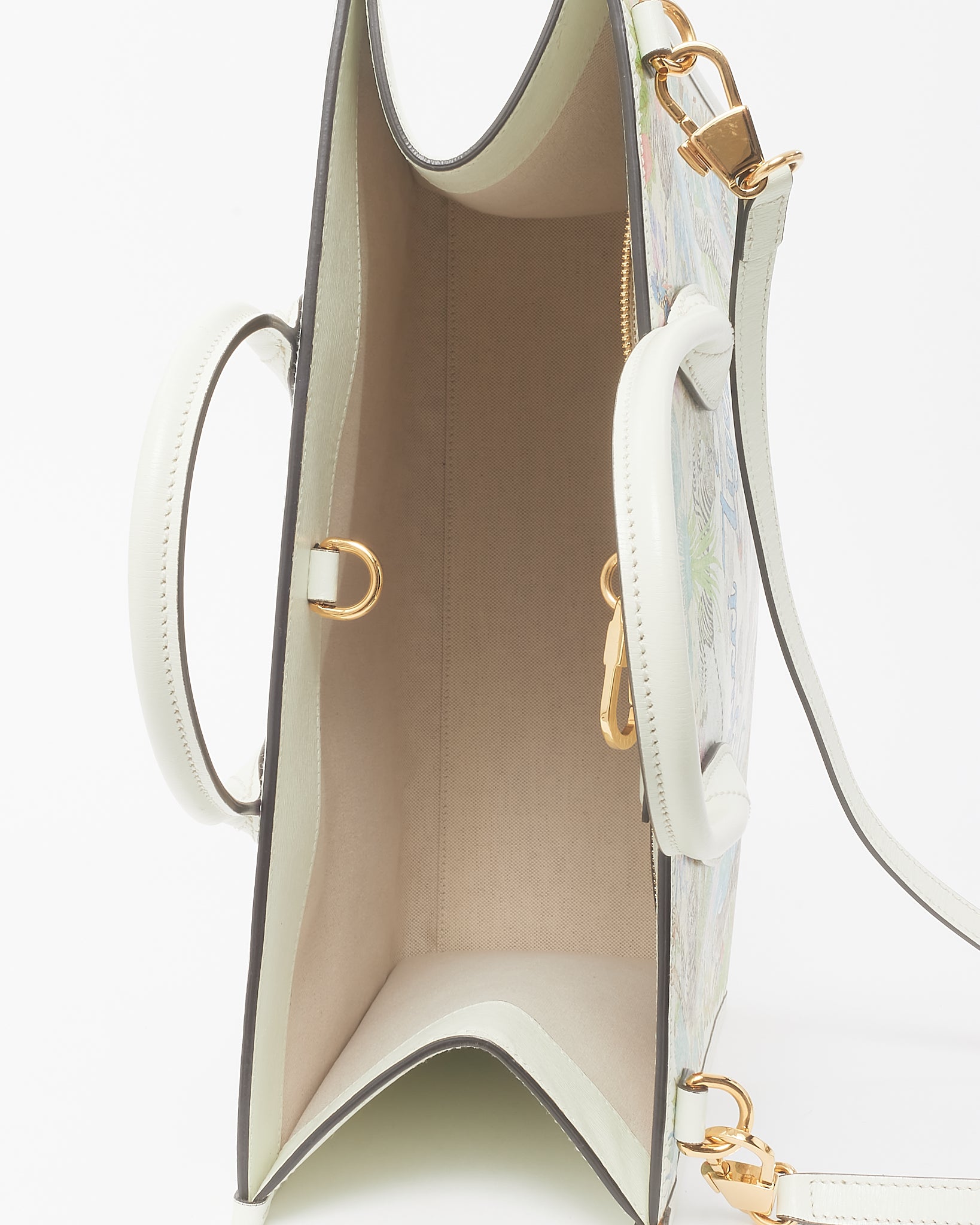 White/Blue/Multi Coated Canvas Medium Tiger Tote with Strap