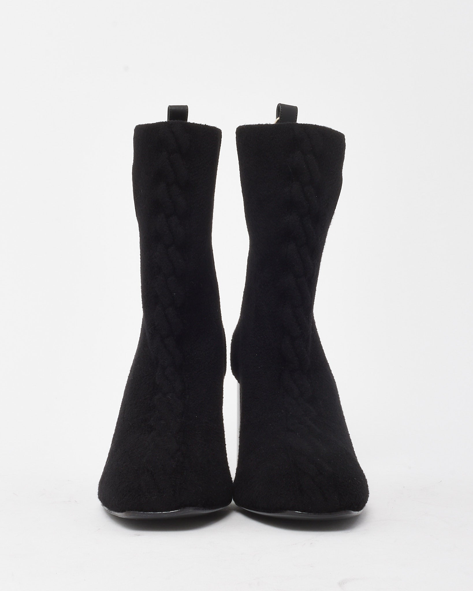 Black Chenille Knit Fabric Jenna 90 Ankle Boots - 41