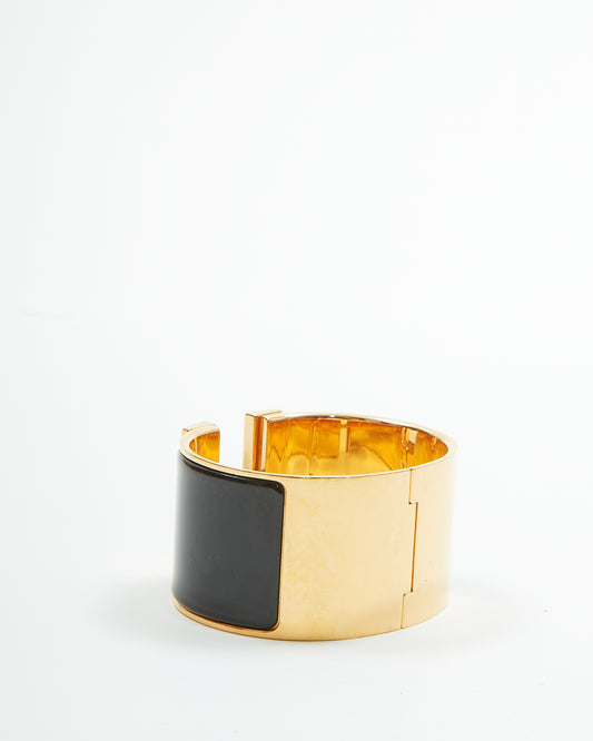 Hermes Black Enamel Gold Plated Extra Large H Clic Bracelet