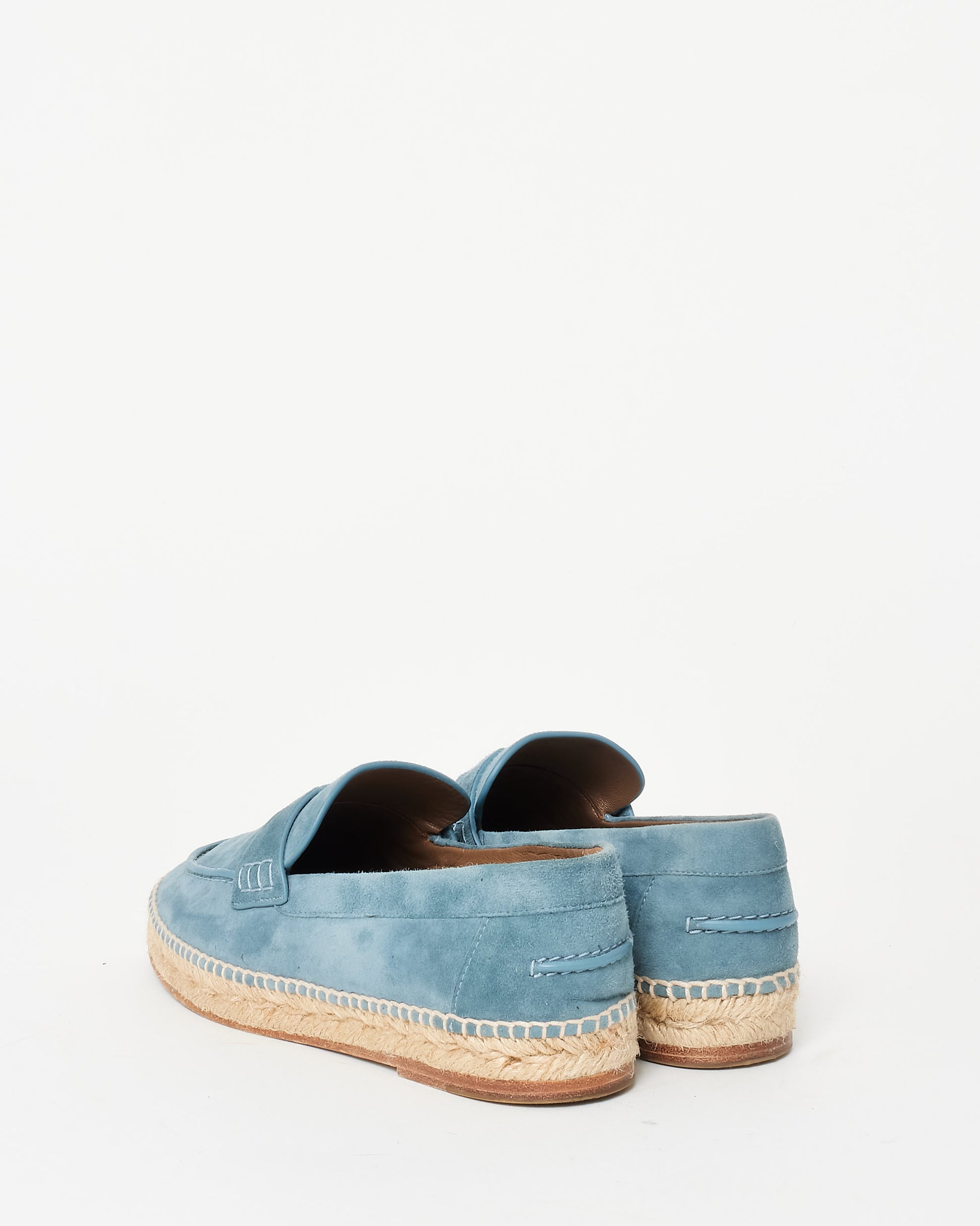 These authentic pre-owned Hermès Blue Suede Trip Espadrilles are a perfect combination of comfort and sophistication. Crafted from luxurious blue suede, these espadrilles feature traditional woven jute soles with a modern Hermès touch, making them an ideal choice for relaxed yet stylish looks. Soft blue suede upper, woven jute with rubber base for added durability and grip, classic slip-on style with subtle Hermès detailing. Shop pre-owned authentic Hermès shoes at Retyche.