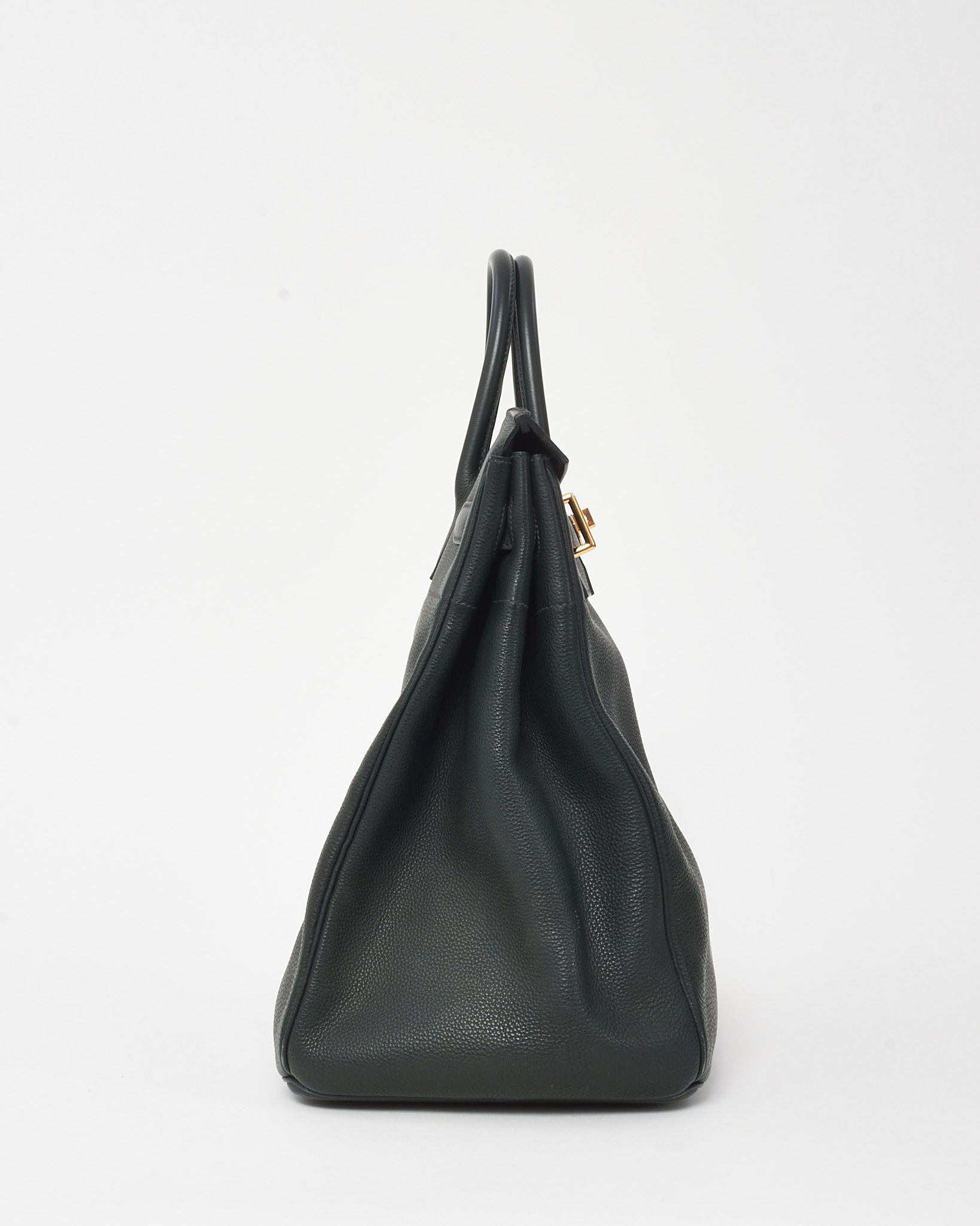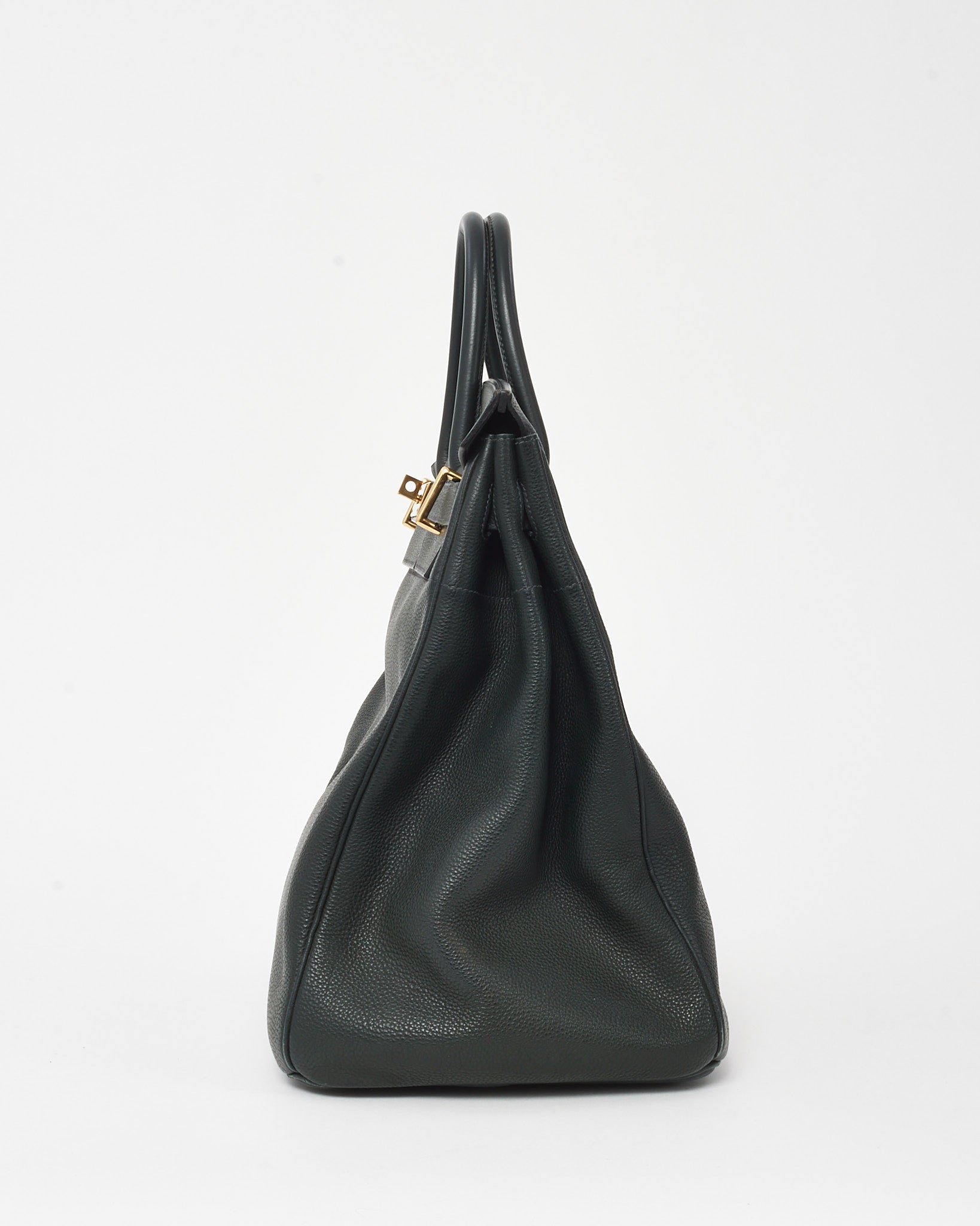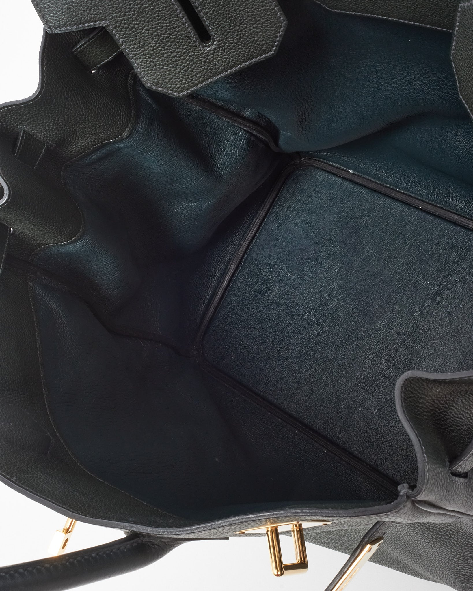 Powerful and refined, this pre-owned authentic Hermès Birkin 40 HAC (Haut à Courroies) is crafted from richly textured dark blue Togo leather and finished with gleaming gold-plated hardware. Designed with the classic Birkin silhouette in a taller, more structured profile, it features dual rolled top handles, a signature flap closure with sangles and a turn-lock, and a spacious leather-lined interior.