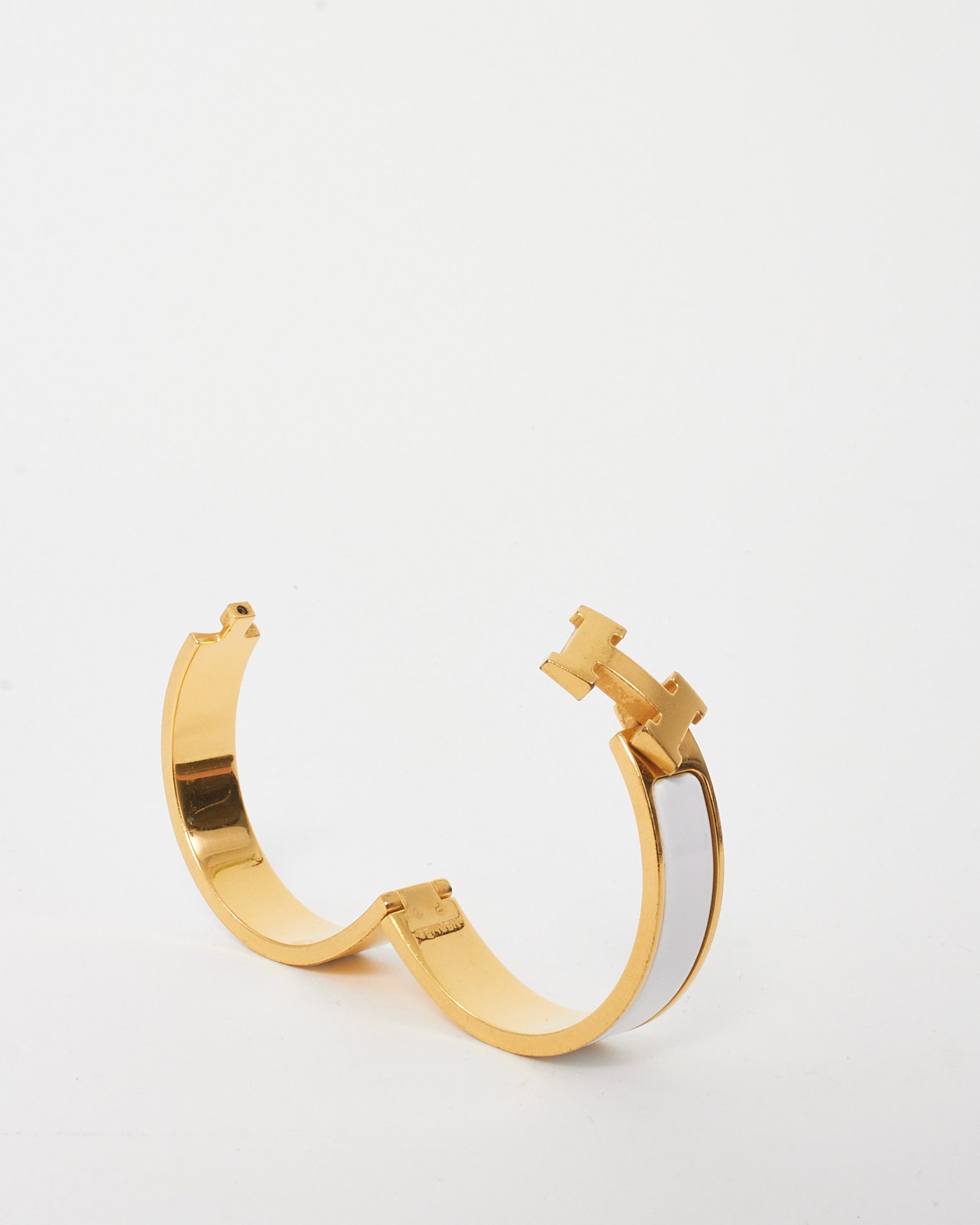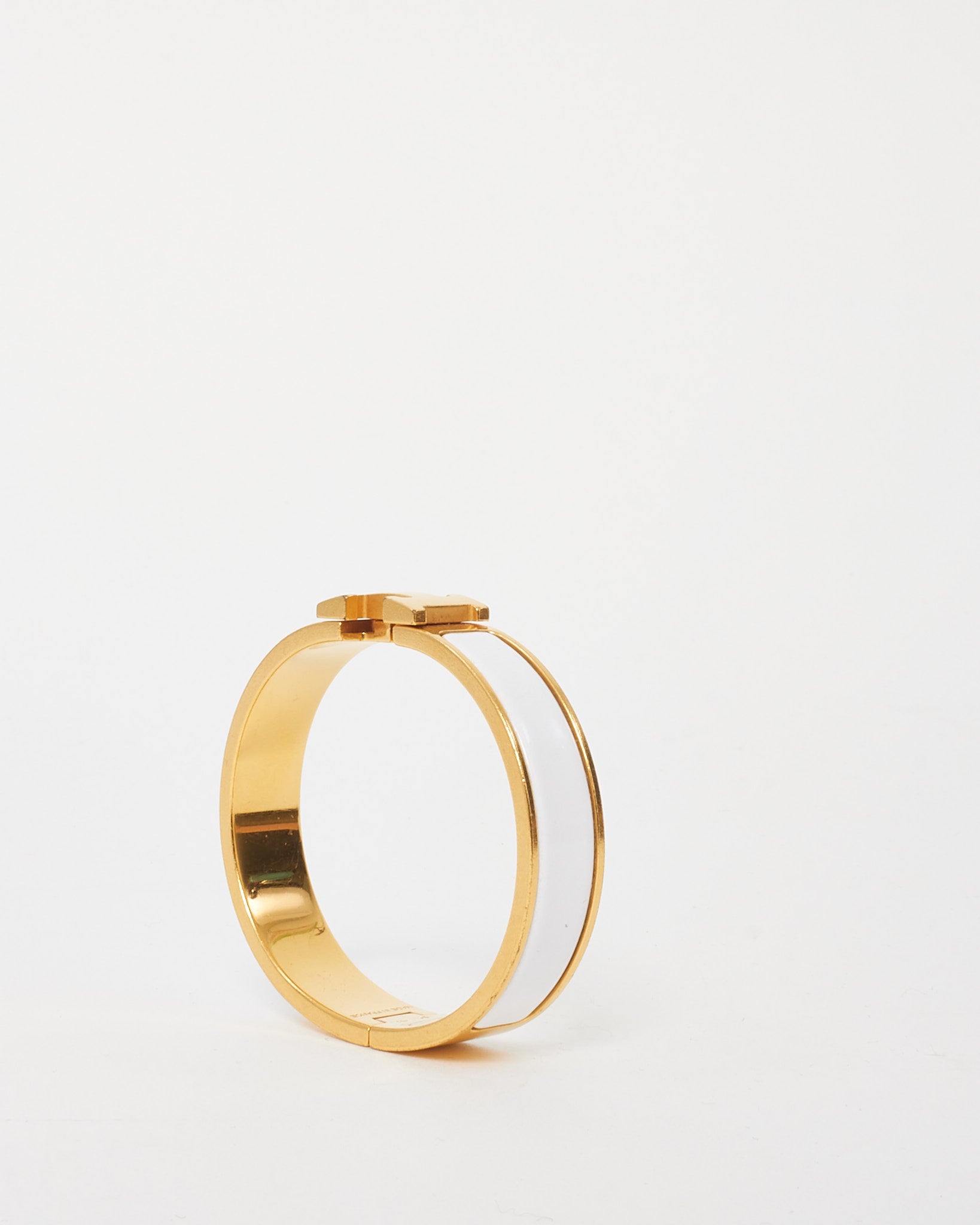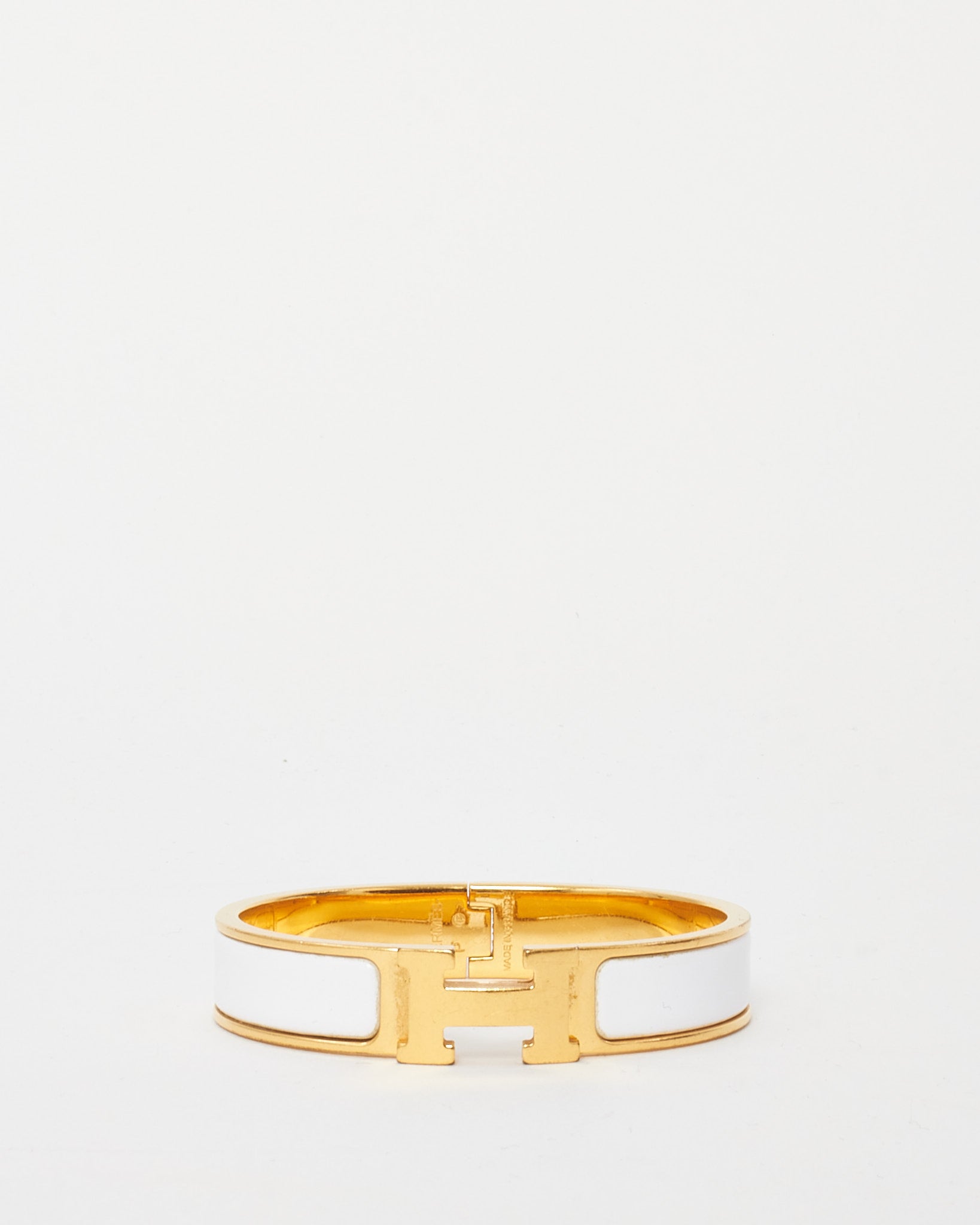 Gold and White Enamel H Clic Clac Bracelet - PM