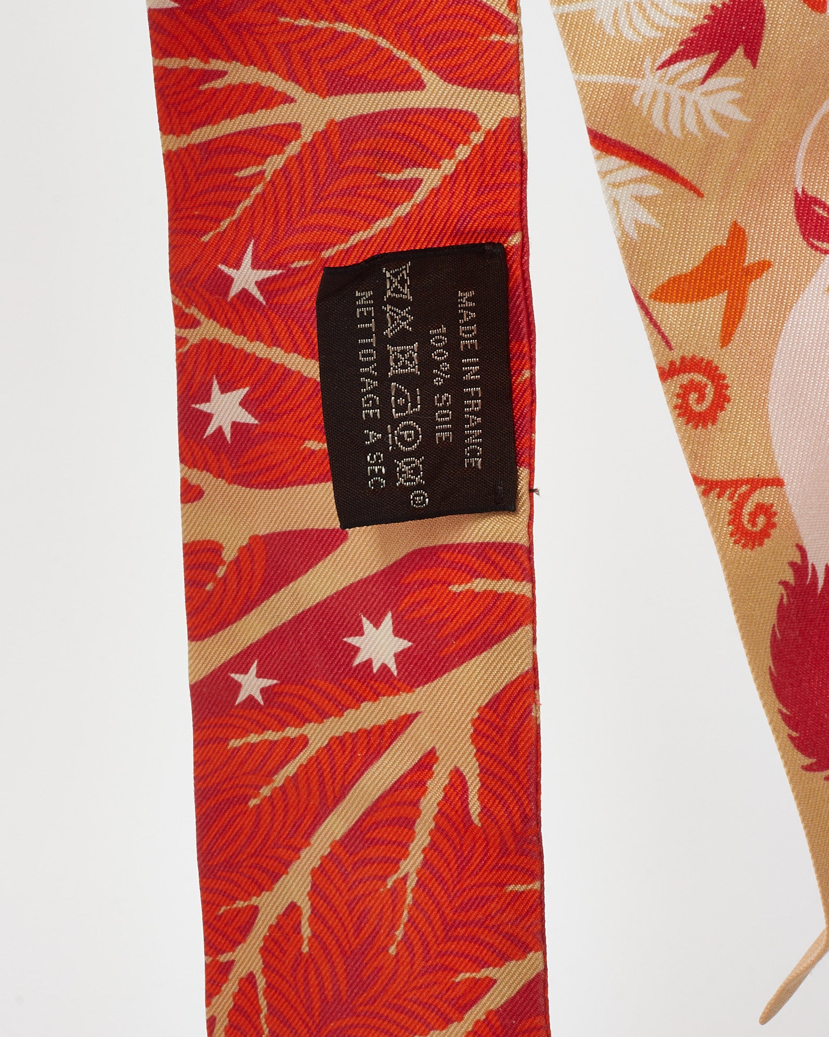 A tribute to poetic myth and Parisian elegance, this pre-loved authentic Hermès Le Charme d’Orphée Twilly Scarf features a captivating orange, beige, and multicolor palette on pure silk. Adorned with intricate imagery inspired by Orphic charm and classical motifs, this slender accessory brings sophistication to any ensemble. Whether wrapped around the neck, tied to a handbag, or styled in the hair, it’s a refined statement of timeless Hermès craftsmanship.