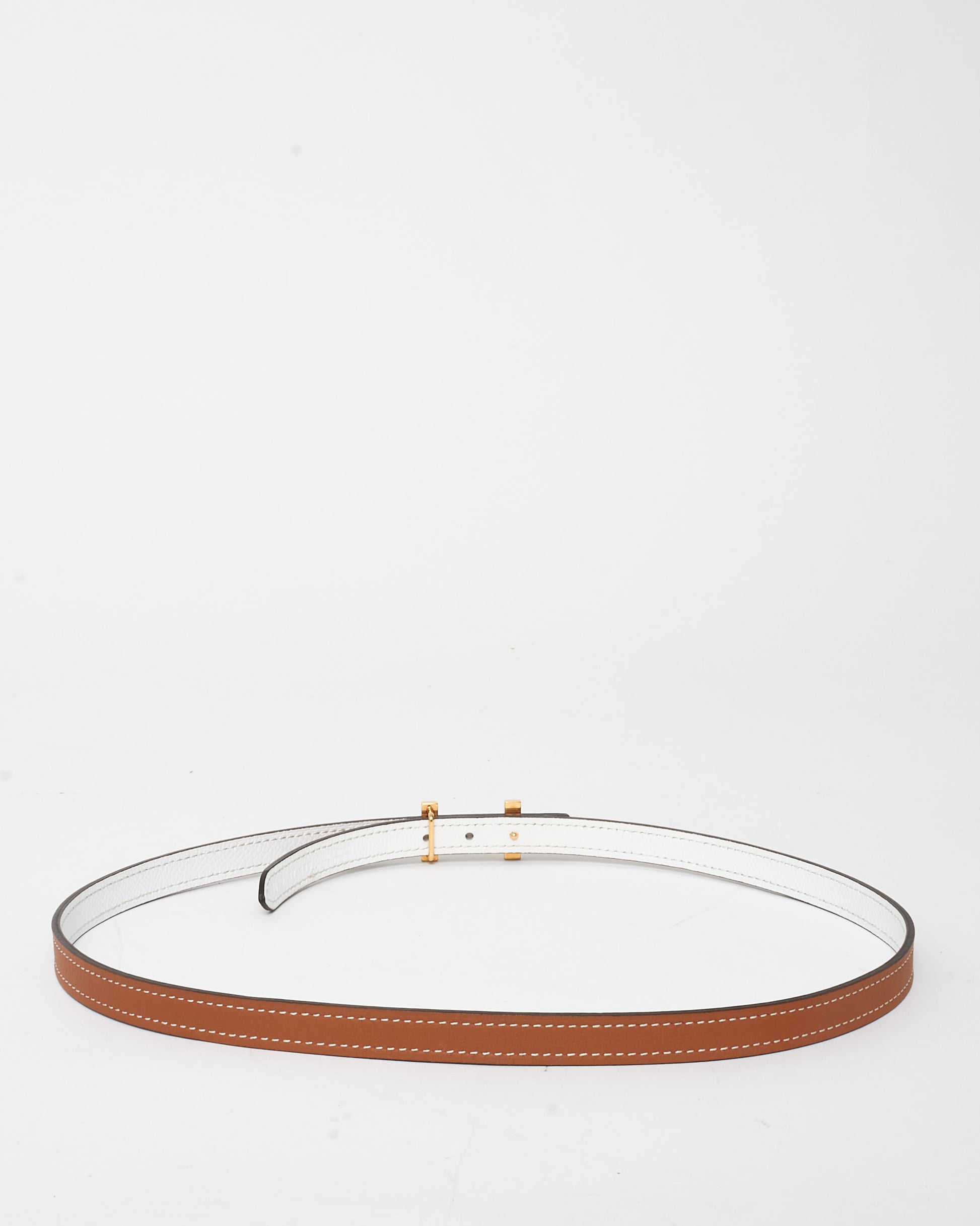 Tan/White Reversible Gold H Thin 13MM Belt - 70