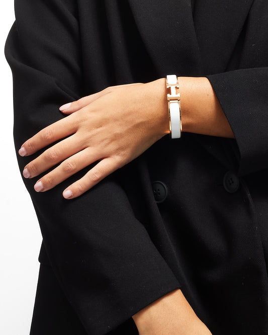 White Enamel Narrow H Clic Clac Bracelet RGHW - GM