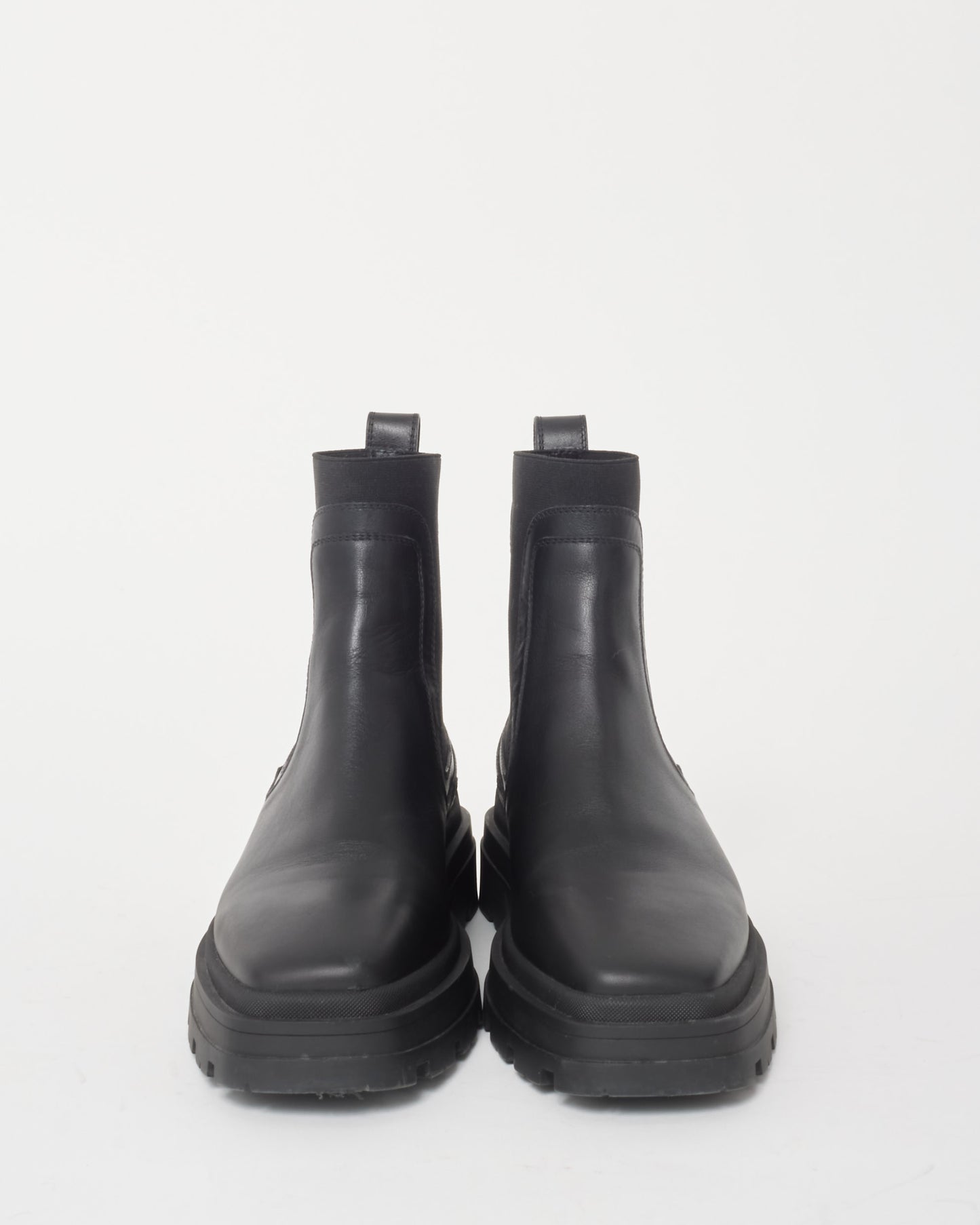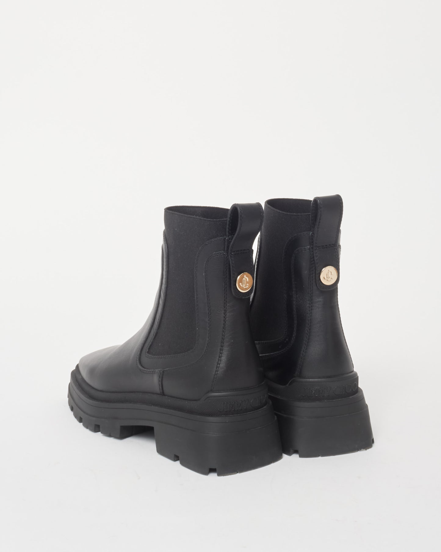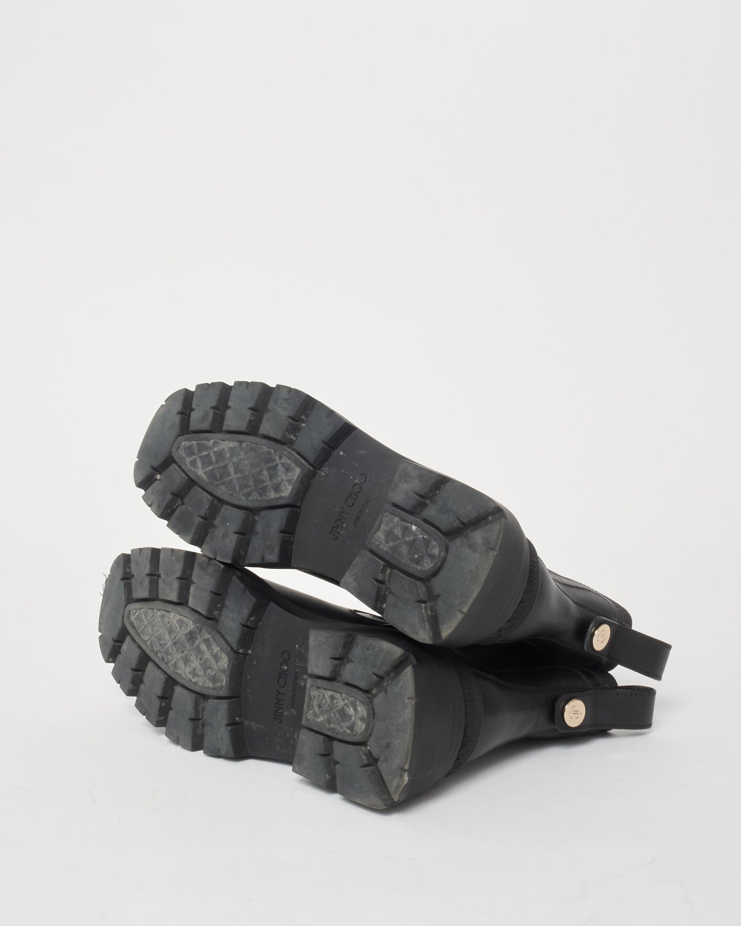These are authentic pre-owned Jimmy Choo Veronique Boots in black leather are the epitome of sophisticated style and impeccable craftsmanship. These versatile boots are designed to elevate any outfit, offering both luxury and comfort for the modern fashion enthusiast. Premium black smooth leather for a sleek and polished finish, ankle-high, chunky block heel for stability and all-day wear, almond-shaped toe for a chic and flattering fit, soft leather interior for a luxurious feel, durable leather sole with rubber inserts for improved grip and durability. Shop pre-owned authentic Jimmy Choo boots & shoes at Retyche.