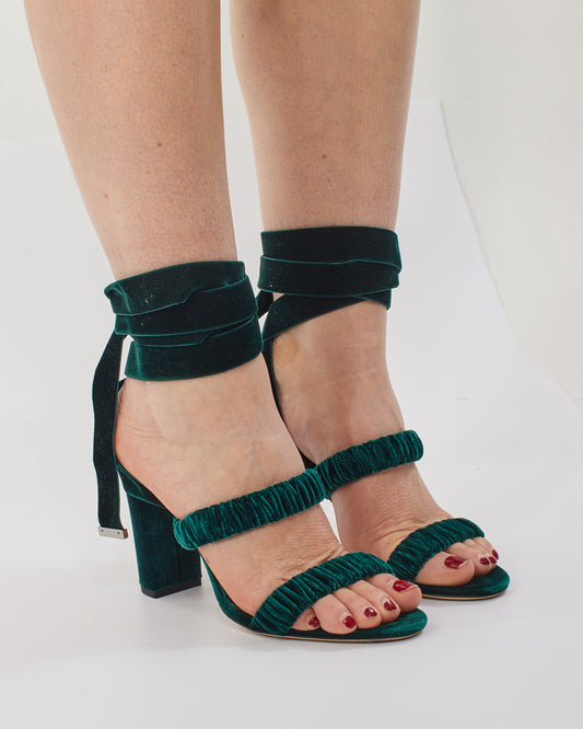 Green Velvet Marcella Ankle-Wrap Heeled Sandals -36.5