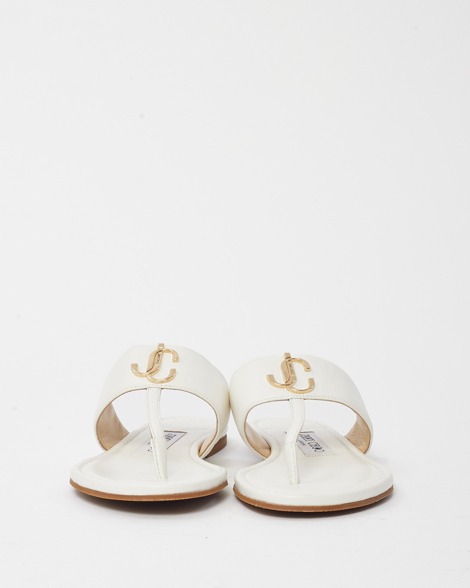 Step into chic simplicity with these pre-loved authentic Jimmy Choo White Leather Flat Sandals in size 35, featuring the iconic gold JC logo. Crafted from smooth white leather, these elegant sandals offer an open-toe silhouette with a minimalist design and luxe branded accent at the vamp. The flat sole ensures comfort for all-day wear, making them a perfect choice for resort getaways, warm-weather strolls, or effortless everyday looks with a designer finish.