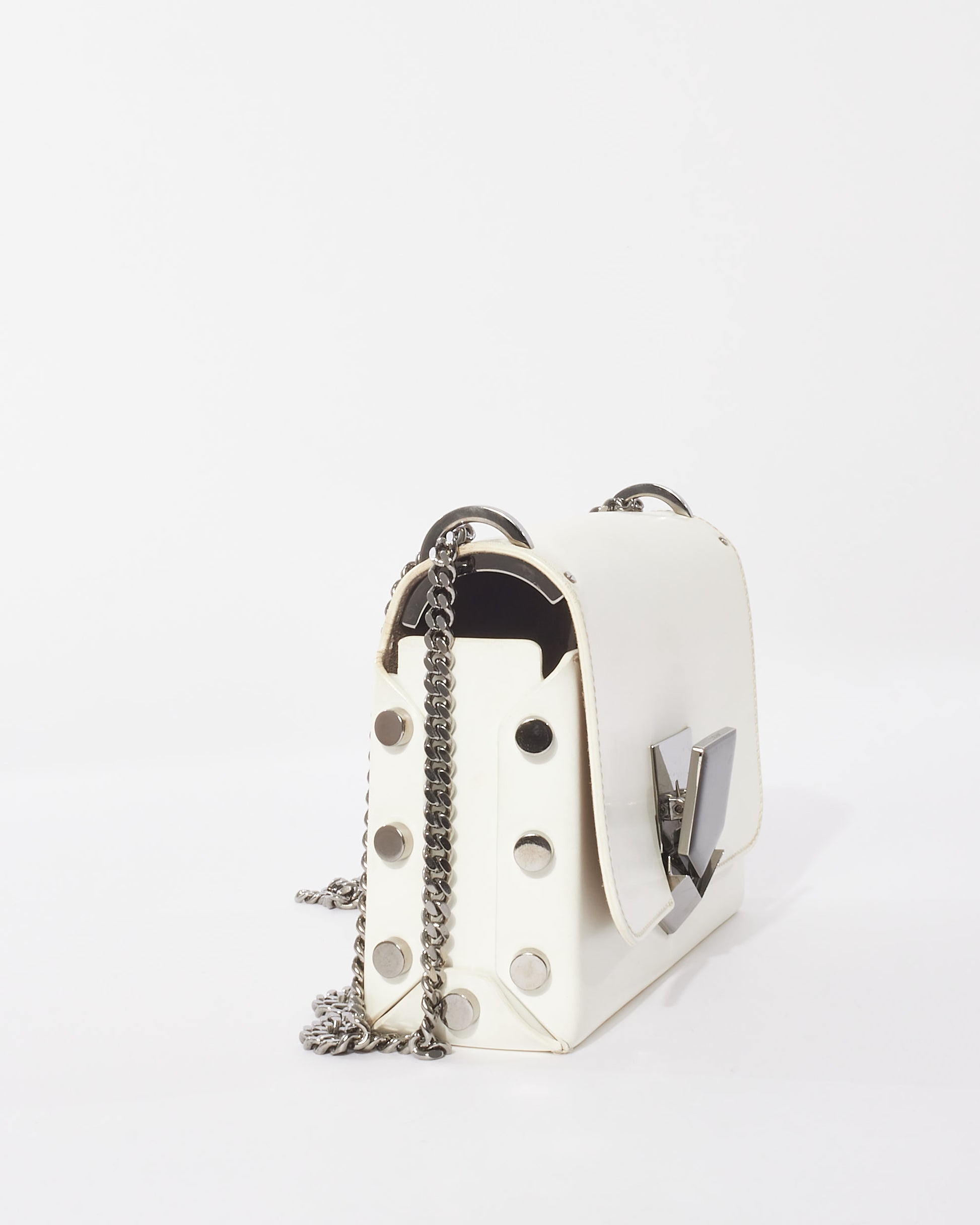 Explore Jimmy Choo's exquisite collection of handbags, featuring this certified pre-owned White Leather Small Lockett Shoulder Bag. Embodying timeless elegance and modern sustainability, each piece, including favorites like this, is authenticated by Retyche. Discover sustainable luxury — shop our current treasures or find inspiration for your next coveted find.
