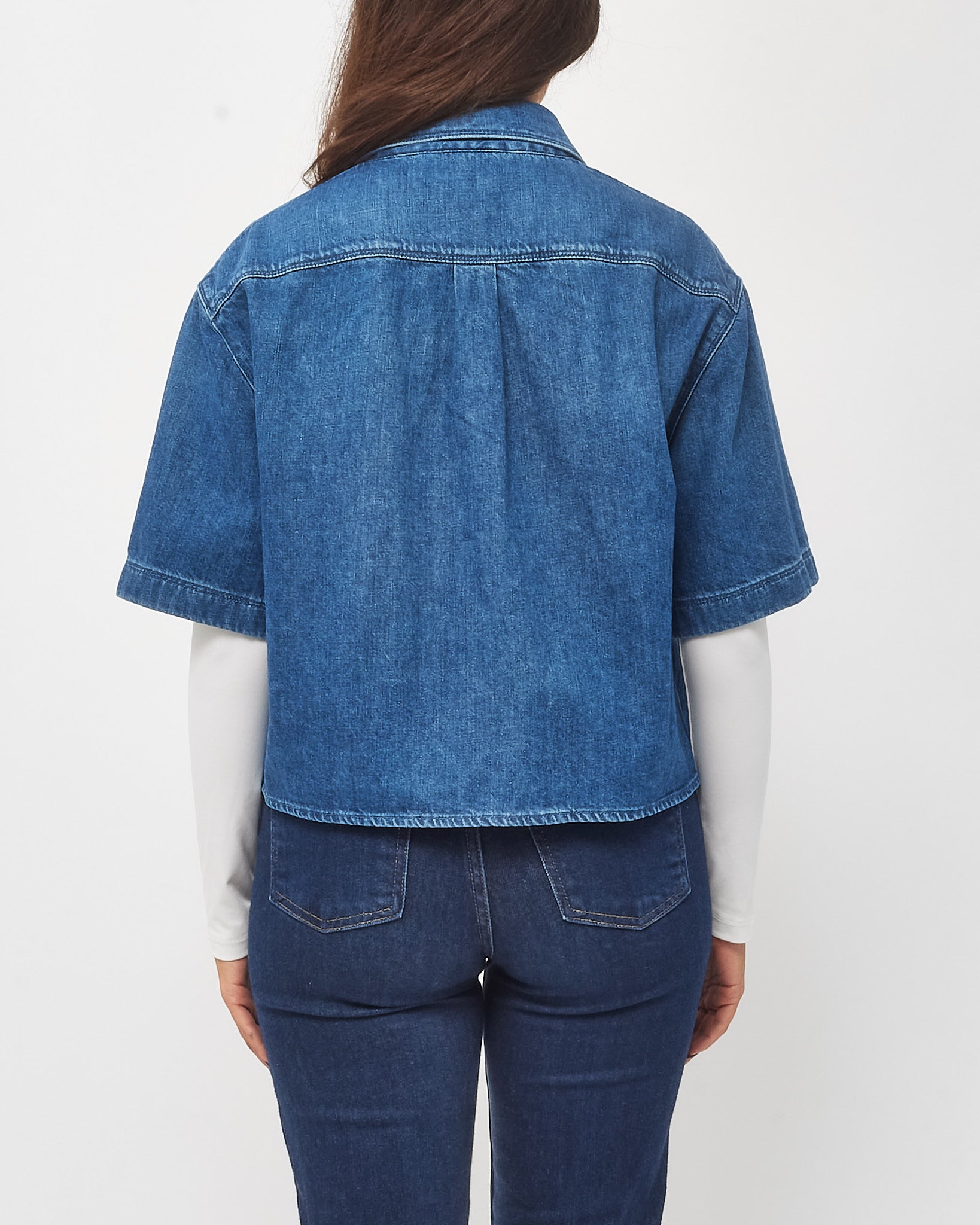 Blue Denim Anagram Logo Pocket Cropped Short Sleeve Shirt - 42/XL