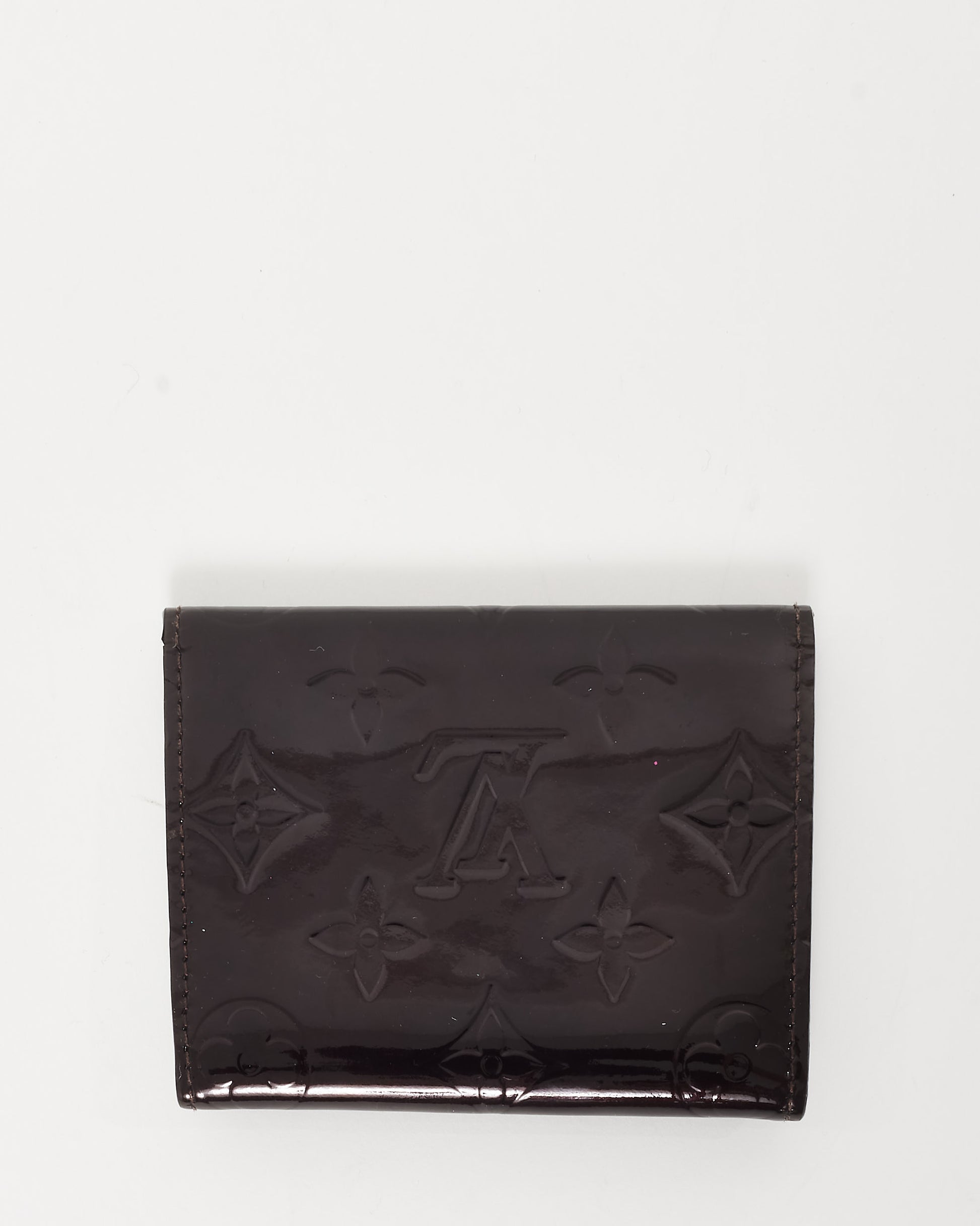 Keep your essentials organized in style with the authentic pre-loved Louis Vuitton Amarante Patent Leather Monogram Card Case, a sleek and sophisticated accessory that exudes timeless elegance. Crafted from luxurious patent leather in a rich amarante hue, this card case features Louis Vuitton’s iconic monogram embossed design, showcasing the brand’s impeccable craftsmanship.