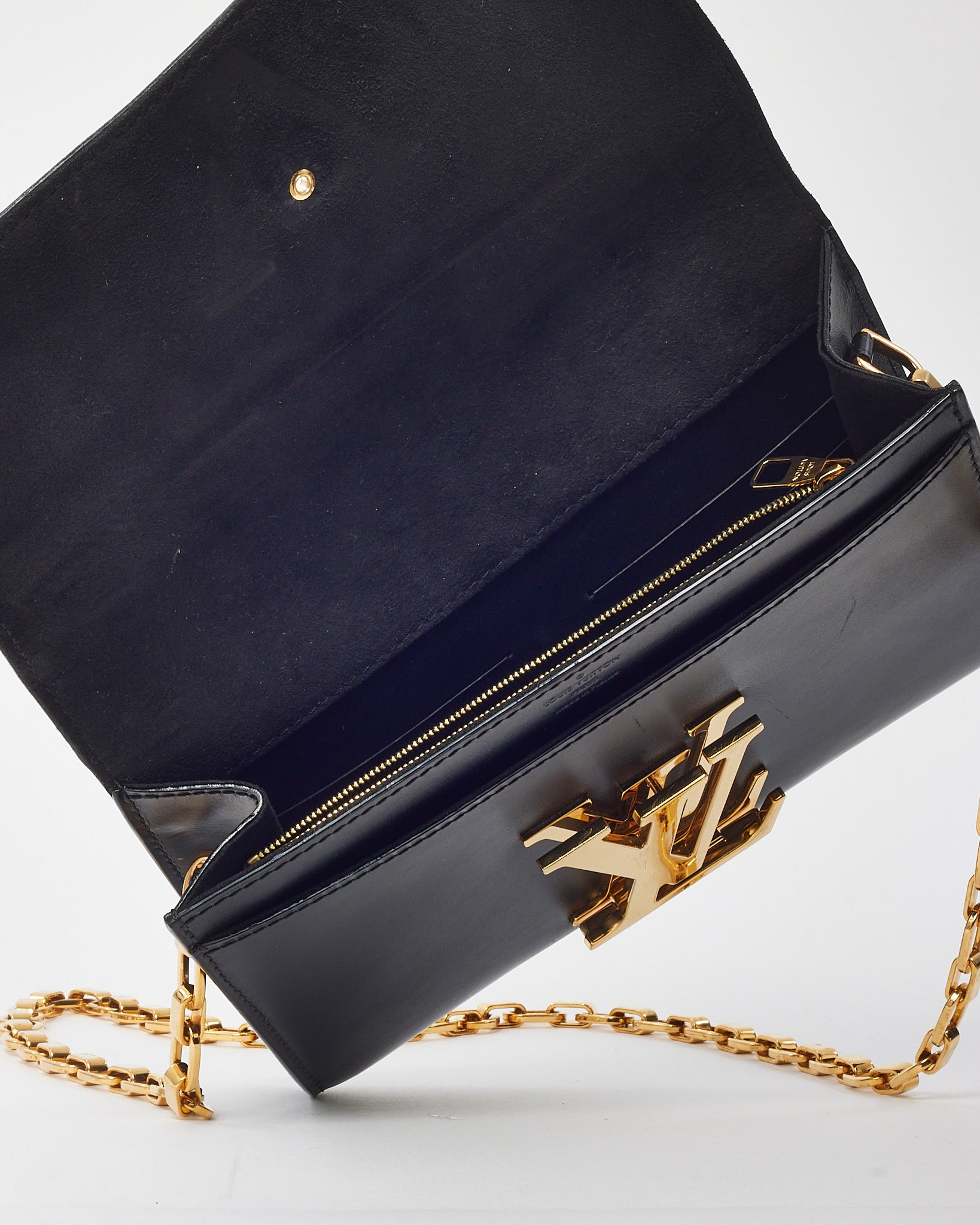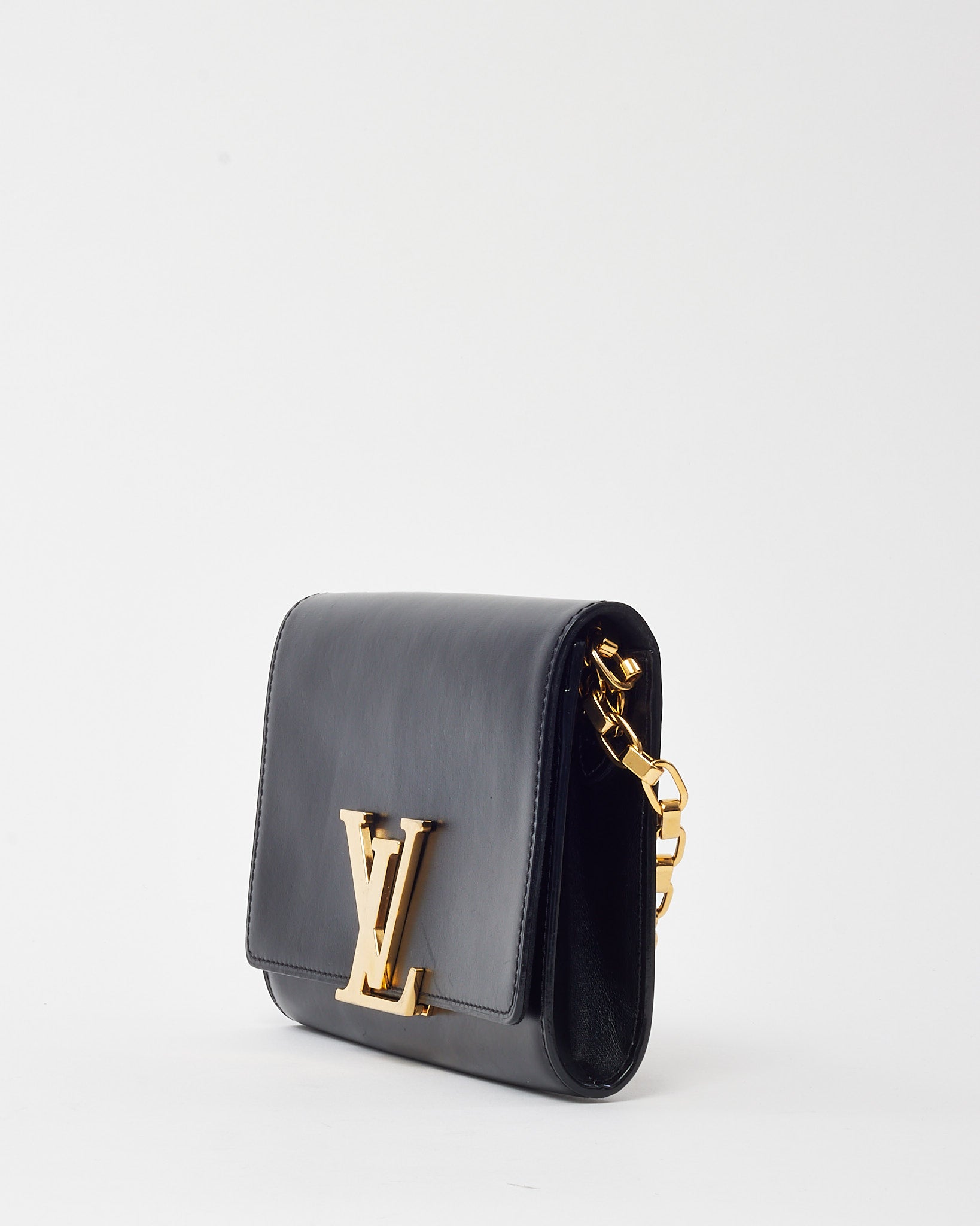 Black Calfskin Leather Louise Lockme Chain Shoulder Bag MM