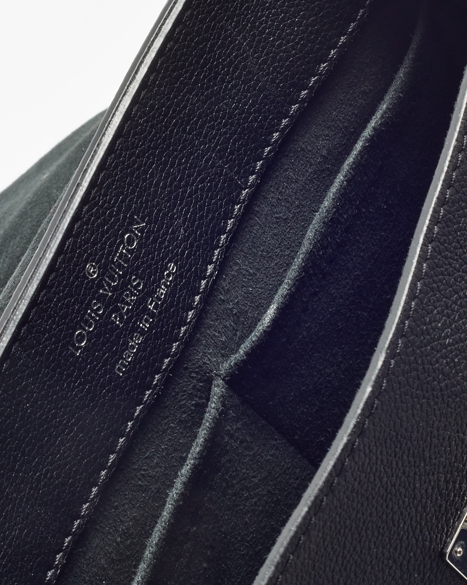 Elevate your everyday wardrobe with this pre-loved authentic Louis Vuitton Black Soft Calf Leather Lockme Ever MM 2Way Bag. Crafted from supple calf leather, this elegant and versatile silhouette features a structured flap design secured by the sleek LV twist-lock closure. The top handle and detachable shoulder strap offer multiple styling options—carry it by hand or wear it crossbody for hands-free ease. Finished with subtle silver-tone hardware and a spacious, well-organized interior, this sophisticated piece is perfect for day-to-night transitions.