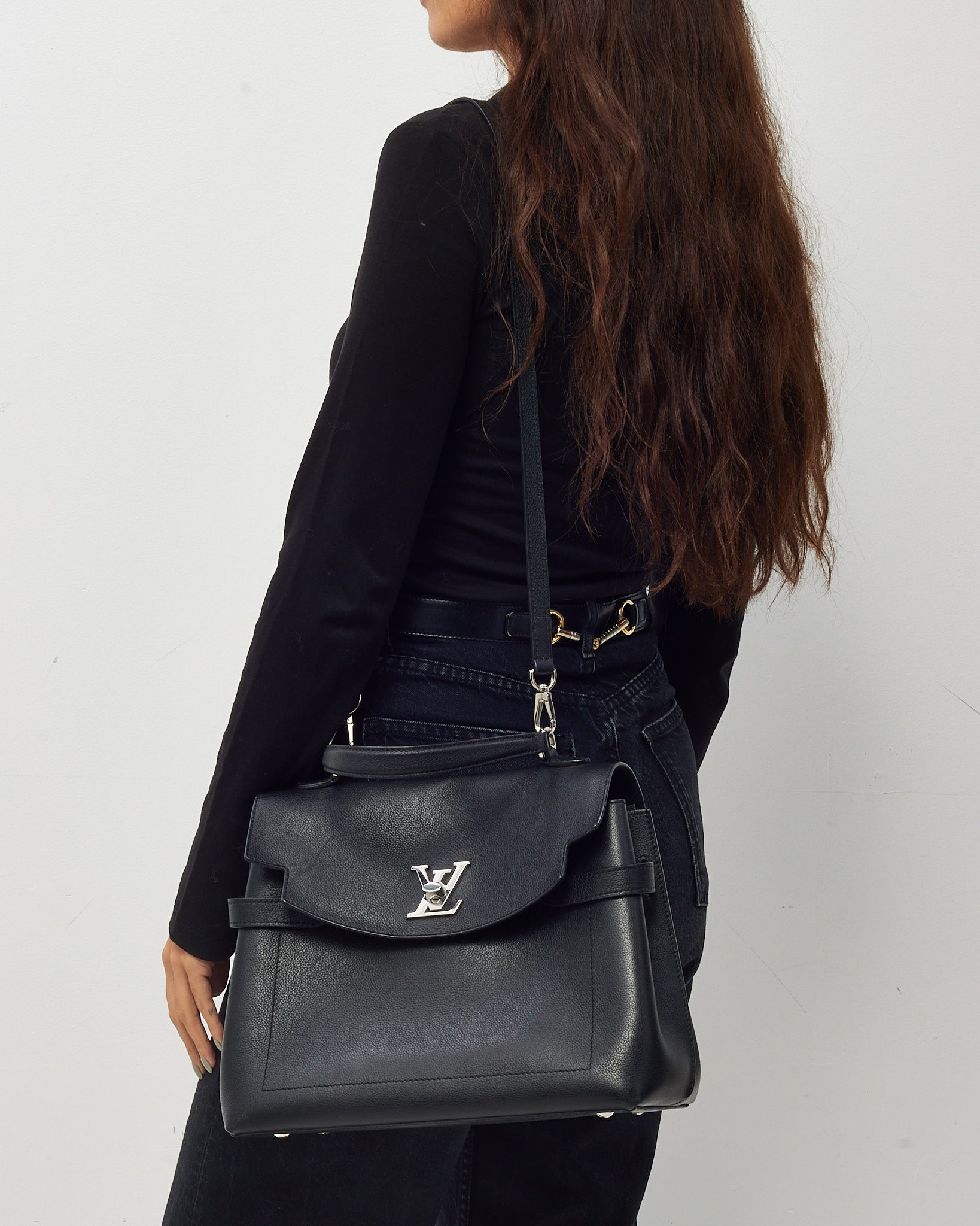 Black Soft Calf Leather Lockme Ever MM 2Way Bag with Strap