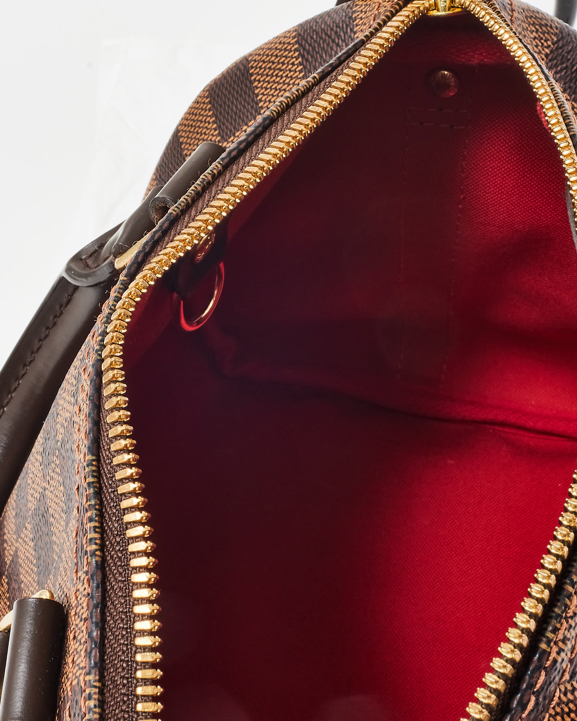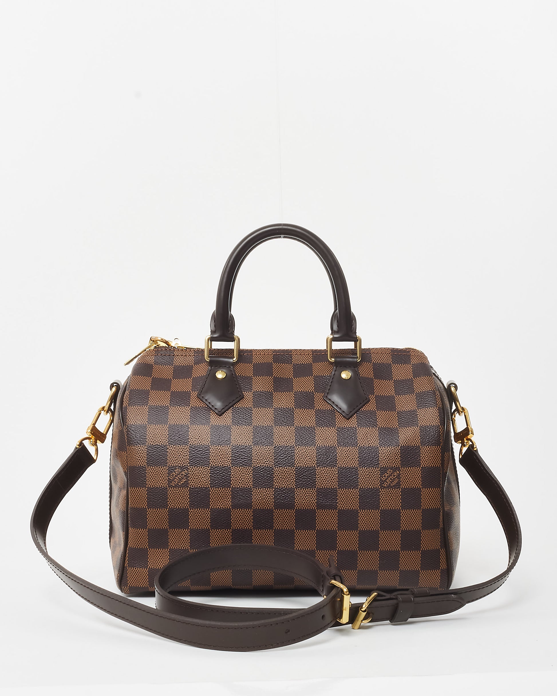 A timeless icon with a modern twist, the pre-owned authentic Louis Vuitton Damier Ebene Canvas Speedy Bandoulière 25 is the perfect blend of elegance, versatility, and practicality. Crafted from signature Damier Ebene coated canvas, this compact yet spacious handbag features a structured silhouette, making it an essential for effortless everyday luxury.