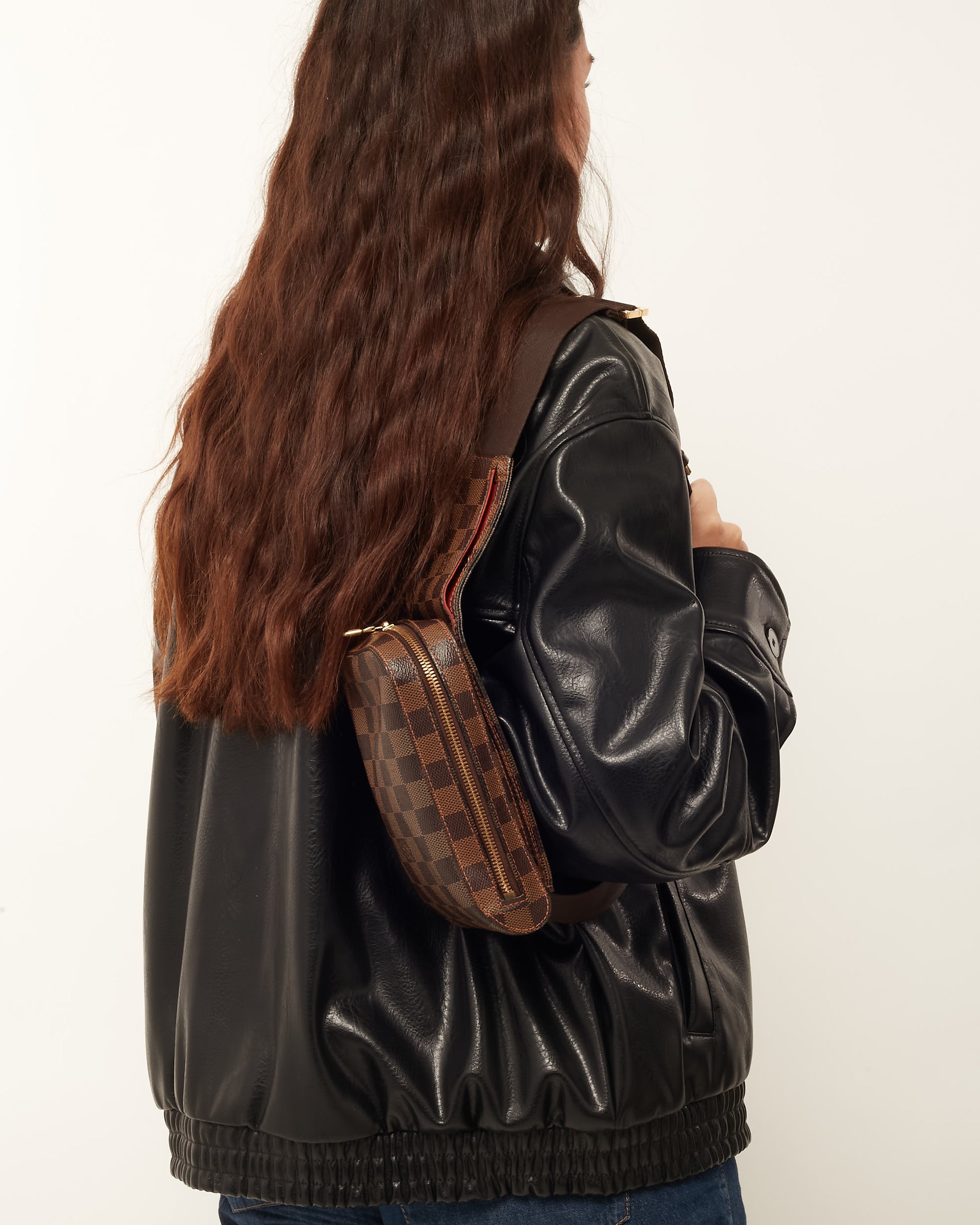 A front zip closure reveals a well-sized interior, perfect for carrying daily essentials, while the adjustable strap allows for easy styling across the body or at the waist. Finished with gold-tone hardware, it’s a smart, timeless companion for life on the go.