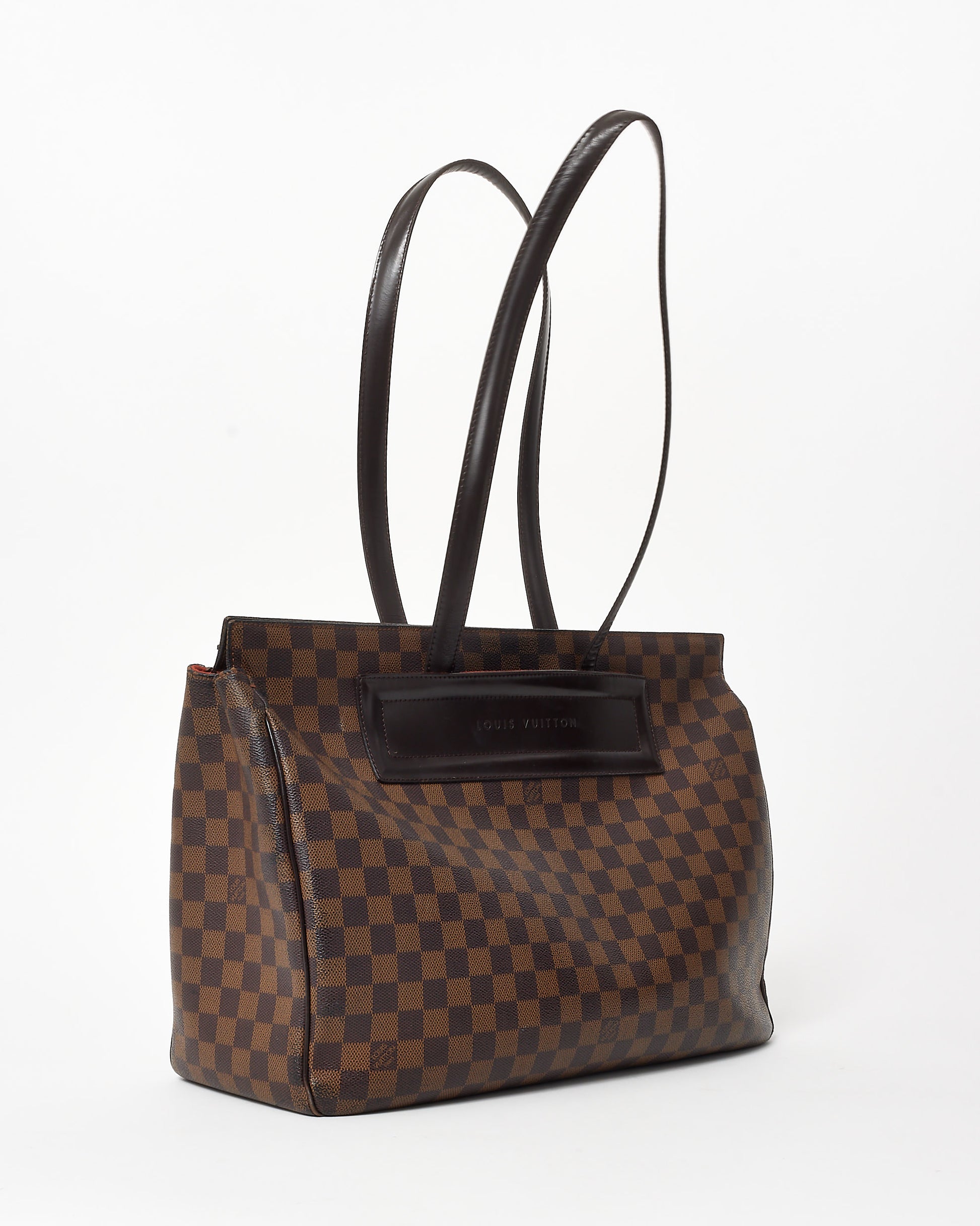 Elevate your everyday style with this authentic pre-owned Louis Vuitton Damier Ebene Coated Canvas Parioli GM Shoulder Bag, a sophisticated blend of practicality and timeless luxury. Crafted from Louis Vuitton’s signature Damier Ebene coated canvas, this bag boasts a structured silhouette that exudes elegance and durability.