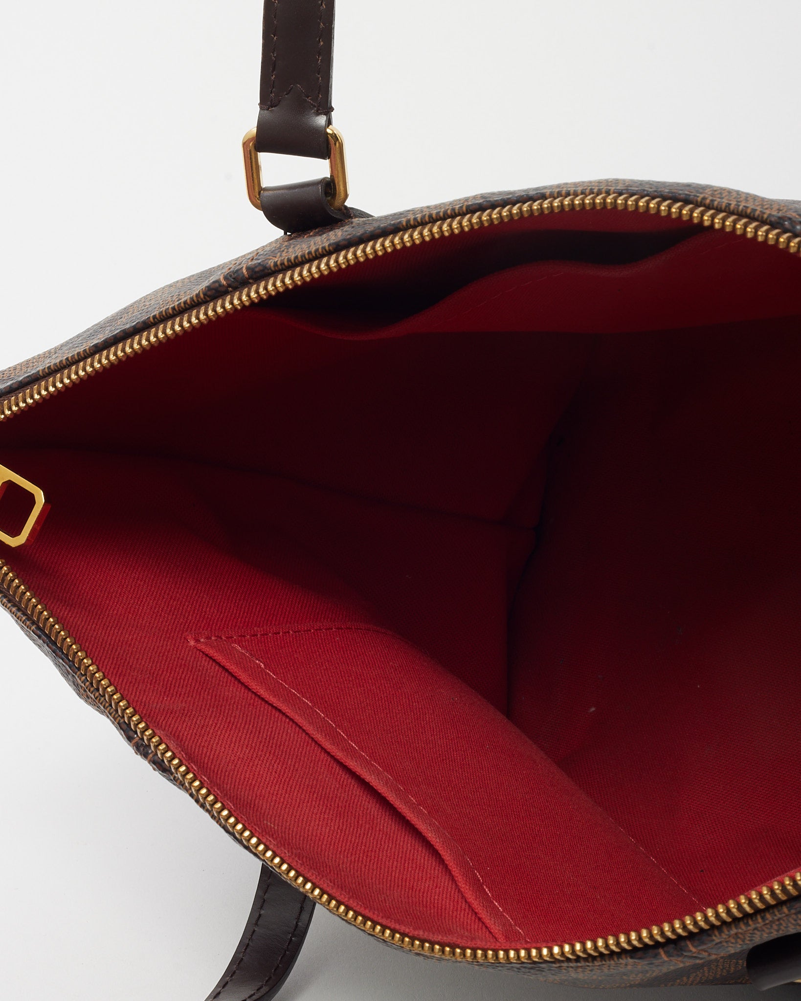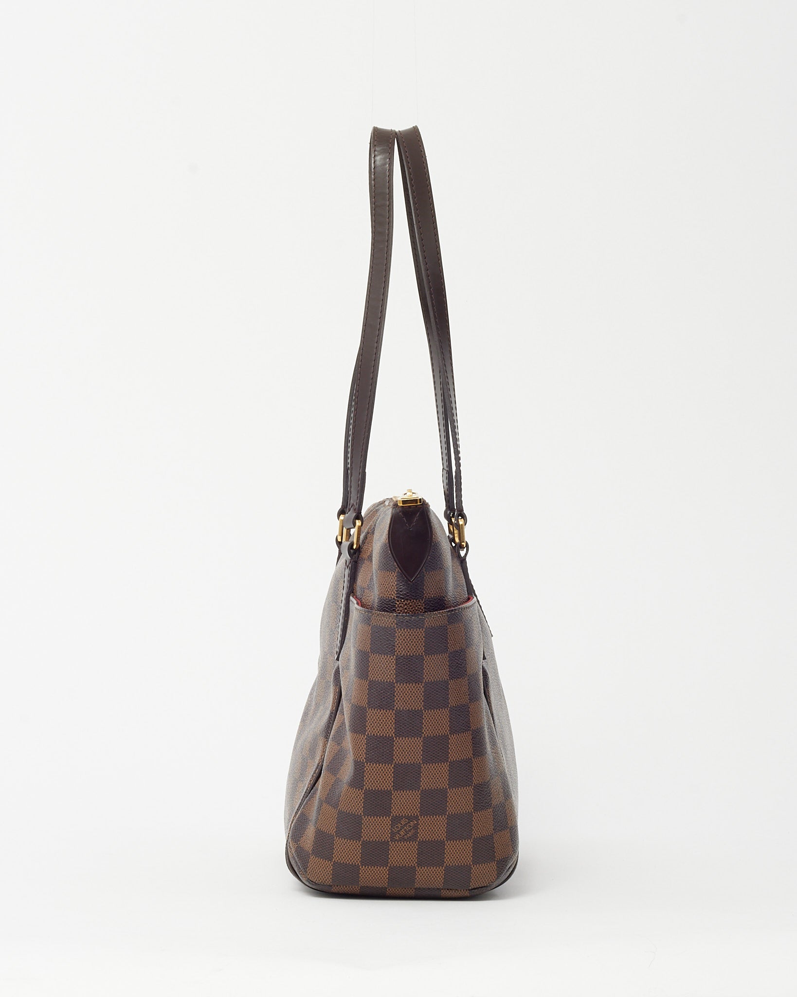 Add everyday elegance to your wardrobe with this pre-loved authentic Louis Vuitton Totally PM Tote, crafted in the house’s iconic Damier Ebene coated canvas. Designed for practicality without compromising on style, this compact tote features comfortable flat leather shoulder straps, gold-tone hardware, and two exterior side pockets for easy access to essentials. The top zip closure opens to a spacious textile-lined interior with multiple pockets, making it perfect for work, errands, or travel. A timeless Louis Vuitton silhouette built for effortless chic.