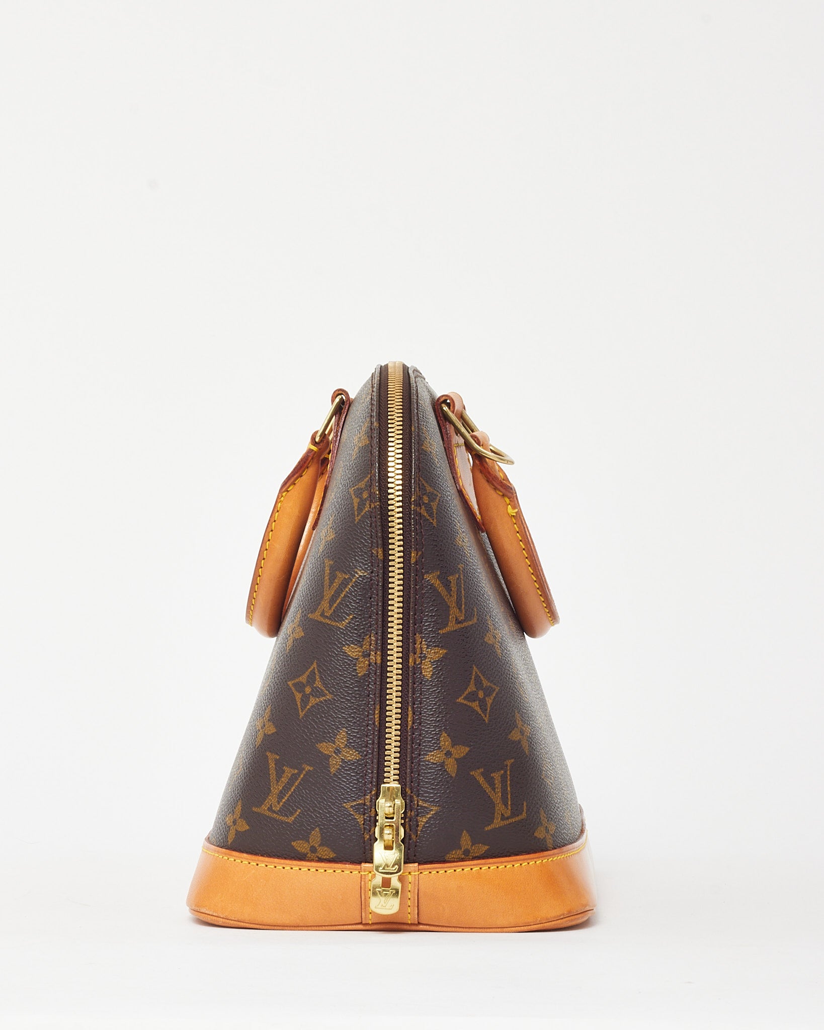 Timeless and structured, this pre-loved authentic Louis Vuitton Monogram Canvas Alma PM Bag is a true icon of the house’s heritage. Crafted from signature monogram coated canvas with natural Vachetta leather trim, this elegant top-handle bag features a dome-shaped silhouette inspired by Art Deco architecture. Gold-tone hardware, double zip closure, and protective metal feet offer both function and polish, while the spacious interior keeps daily essentials organized. Sophisticated and versatile, it’s a classic staple for refined everyday style.