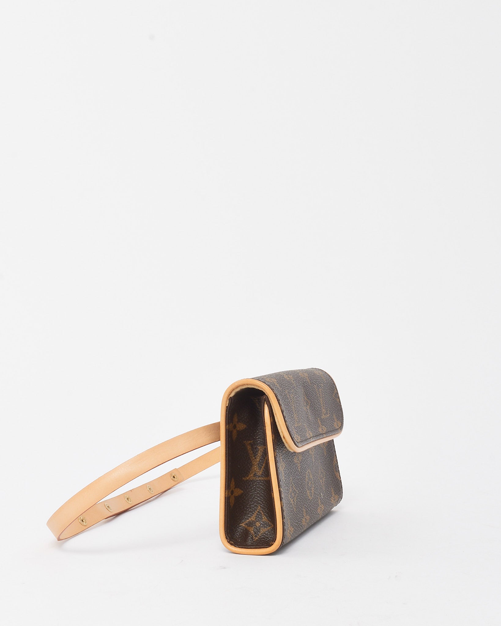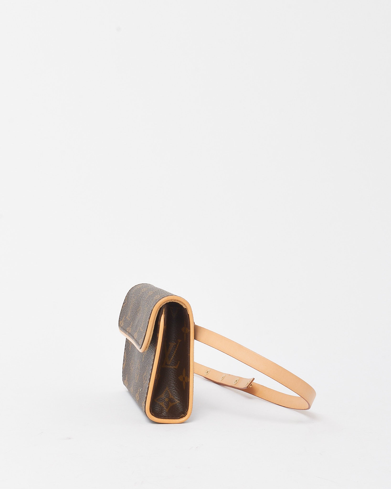 Add timeless versatility to your accessories with this pre-loved authentic Louis Vuitton Monogram Canvas Florentine Belt Bag in size XS. Crafted in the house’s signature monogram coated canvas with natural Vachetta leather trim, this compact belt bag offers a hands-free option with effortless style. The minimal silhouette opens to a microfiber-lined interior just roomy enough for small essentials, making it ideal for errands, events, or travel. Designed to be worn with a belt, this chic archival piece is a must-have for collectors and lovers of vintage Louis Vuitton charm.