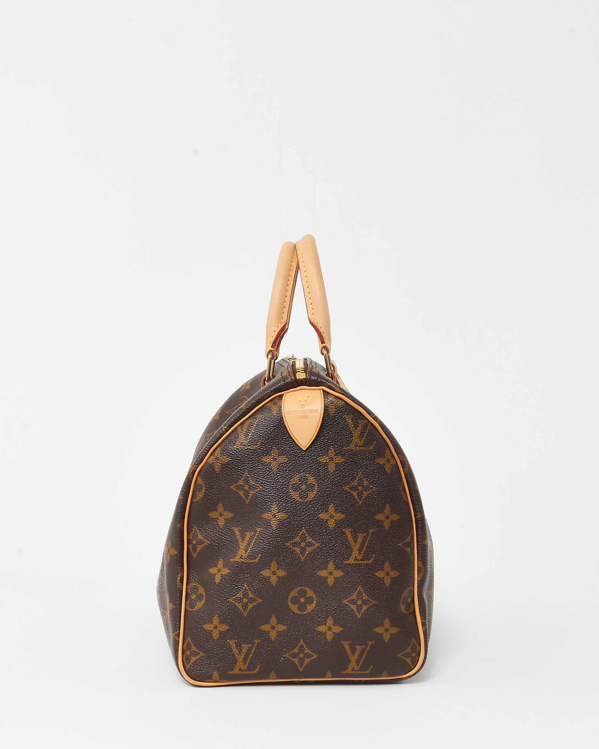 A timeless icon of luxury fashion, the authentic pre-owned Louis Vuitton Monogram Canvas Speedy 30 Bag is the perfect blend of elegance and practicality. Crafted from signature monogram-coated canvas, this bag features a structured yet slouchy silhouette, making it an effortlessly chic everyday companion.