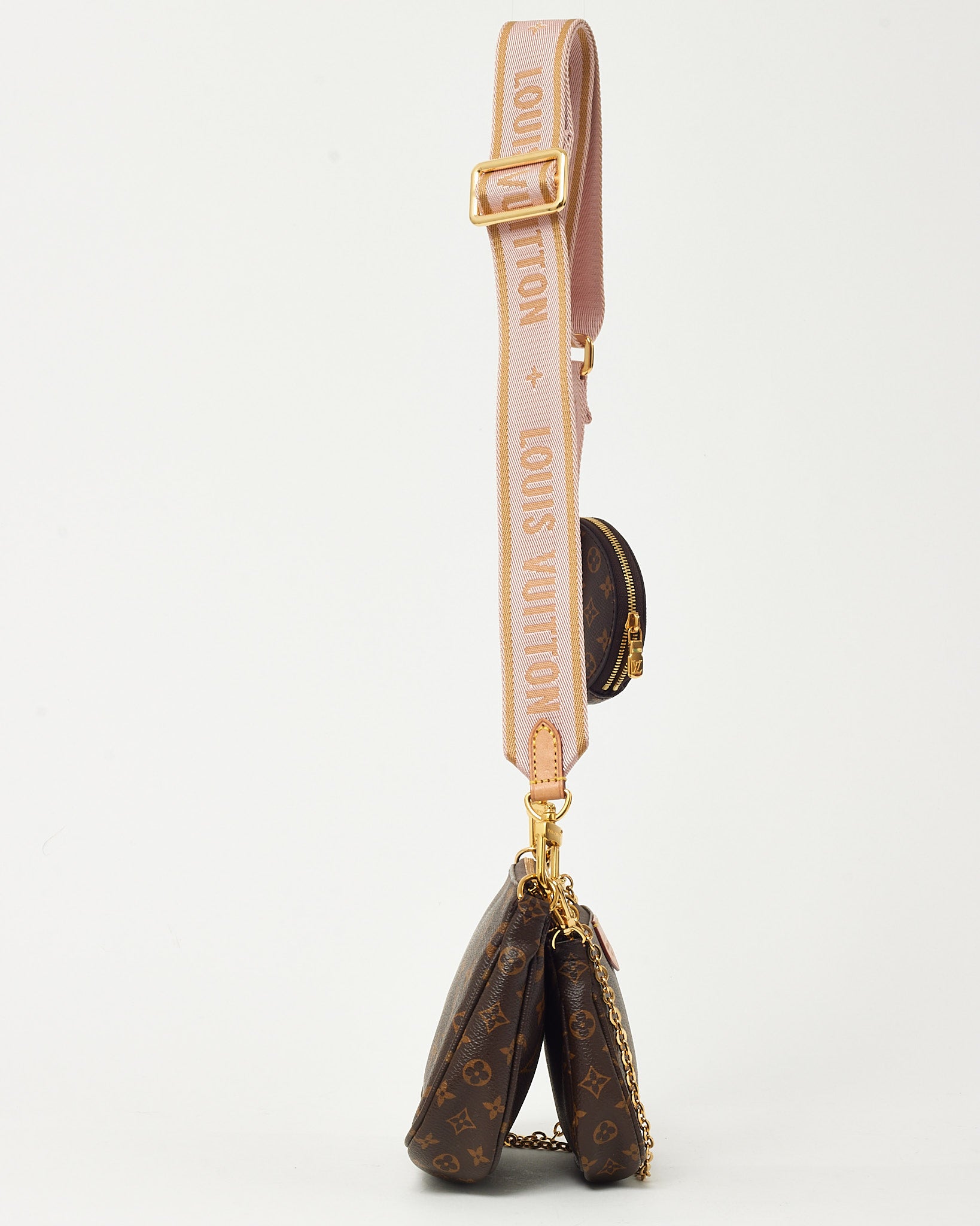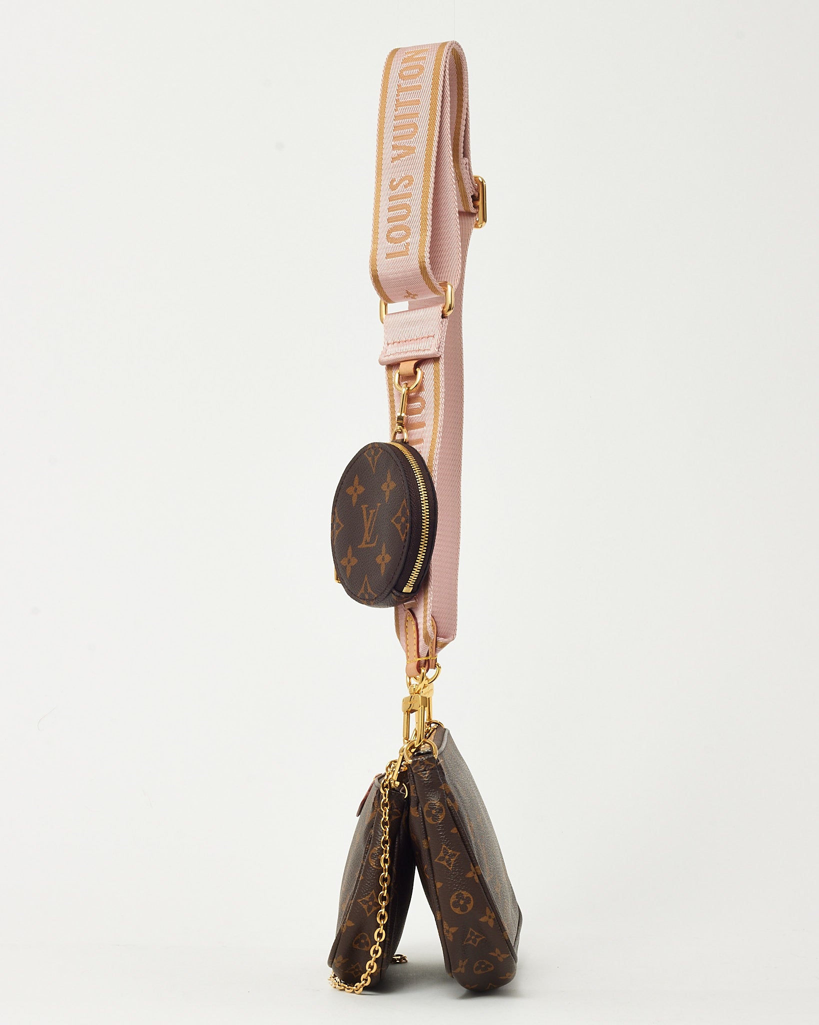 Add a playful, multi-functional statement to your collection with this pre-loved authentic Louis Vuitton Monogram Coated Canvas Pink Multi Pochette Accessoires Crossbody Bag, crafted in the house’s iconic monogram coated canvas with vibrant pink accents. This versatile design features multiple detachable pouches and straps, allowing for endless styling options—from crossbody to shoulder bag or worn separately. Finished with polished hardware and thoughtfully designed compartments for essentials, this Louis Vuitton piece blends practicality with bold, modern style. A highly coveted LV bag that delivers iconic monogram appeal with a fresh, fashion-forward twist.