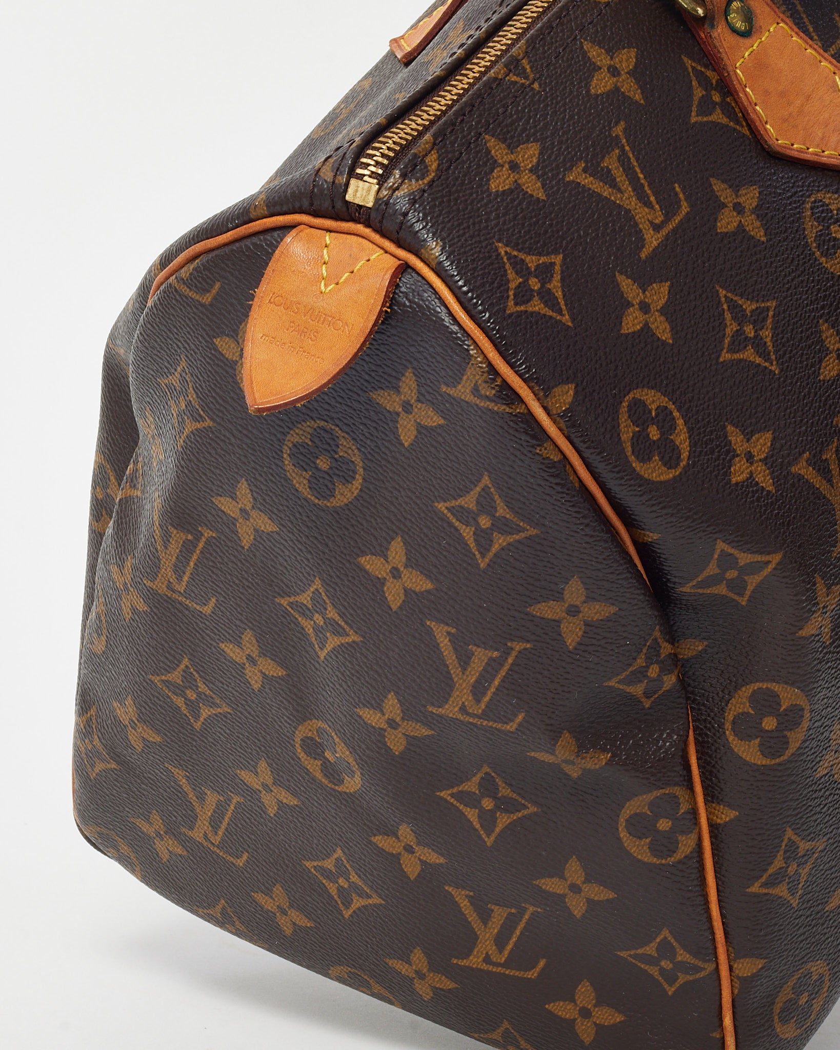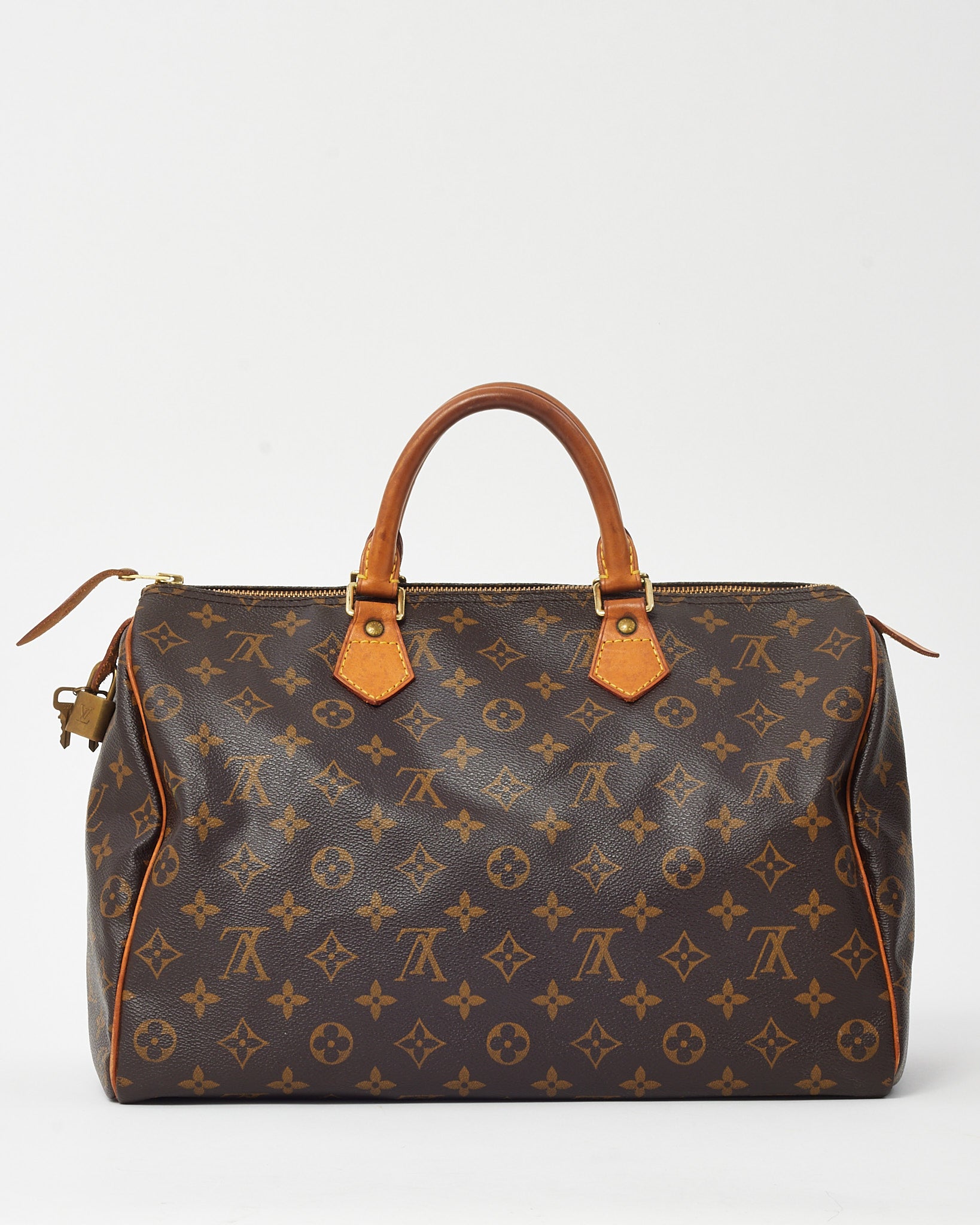 Elevate your handbag collection with this pre-loved authentic Louis Vuitton Speedy 35, crafted in the House’s signature Monogram coated canvas. A timeless icon of the LV lineup, this spacious silhouette features rolled leather handles, gold-tone hardware, and a structured yet supple form designed to go wherever the day takes you. With its zip-top closure and classic detailing, the Speedy 35 balances everyday functionality with unmistakable Parisian elegance, making it a travel-ready staple and an enduring favorite among fashion enthusiasts.
